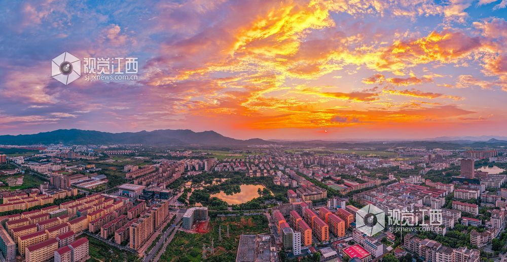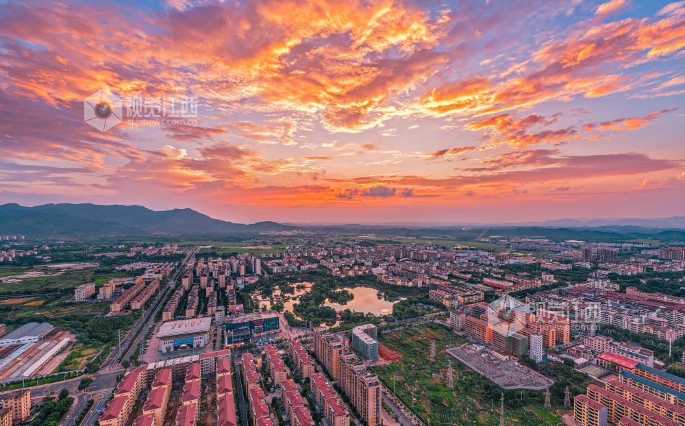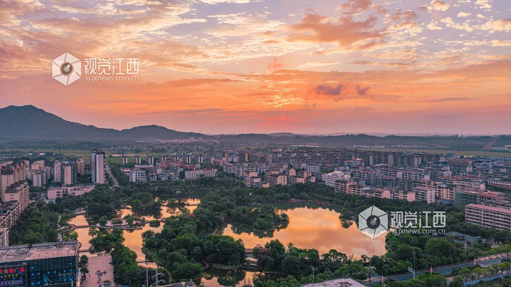 落日余晖映晚霞,一抹夕阳美如画。6月9日傍晚,江西省吉安市峡江县锦绣湖湿地公园上空晚霞如画,云朵与余晖辉映,构成迷人自然景观,美不胜收。