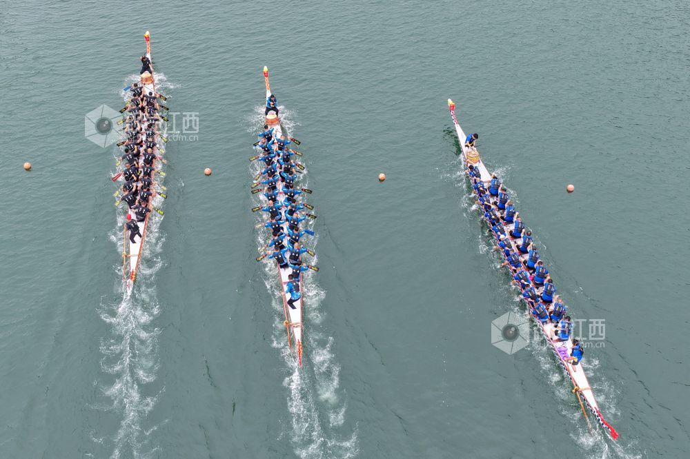 36支来自省内外不同地区的龙舟劲旅汇聚于此,他们带着各自民族的特色与风采,在龟峰湖上展开了一场速度与激情的较量。此次比赛不仅是一场体育盛宴,更是各民族文化交流与融合的重要平台,通过龙舟竞渡这一传统形式,弘扬了中华民族团结协作、奋勇争先的精神,让传统文化在新时代焕发出新的活力。这是2025年6月11日,各参赛队在江西省弋阳县5A级风景名胜区龟峰举行比赛现场。
