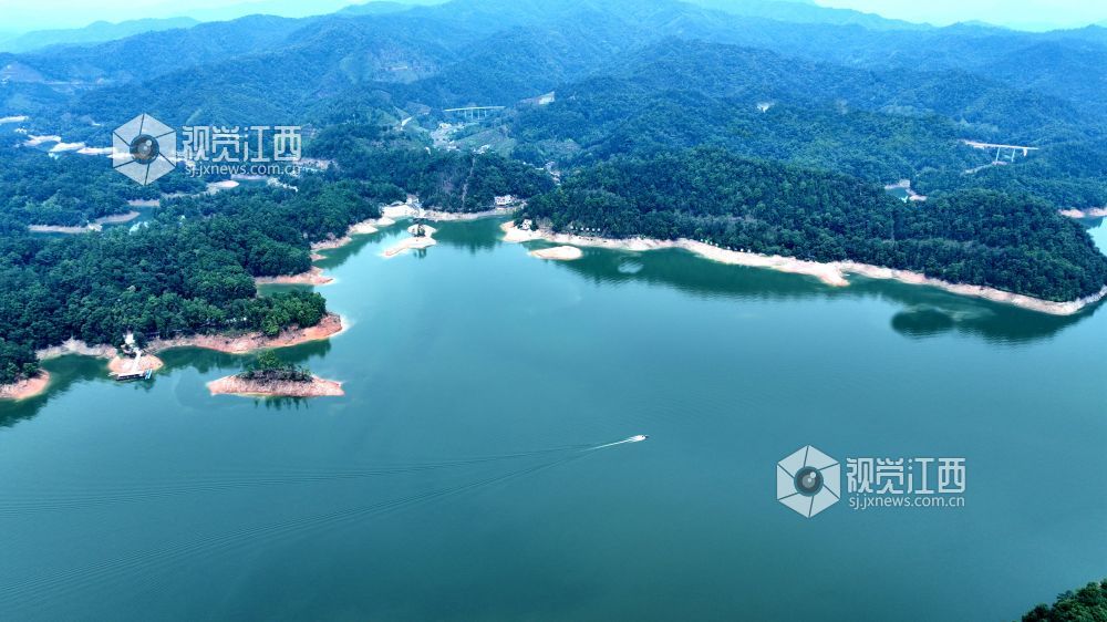 2025年6月11日,俯瞰江西省上犹县阳明湖展现绝美风姿,湖水如镜,澄澈碧绿蜿蜒于青山之间,葱郁小岛似绿宝石散落,被碧波轻拥。四周群山连绵,林木繁茂,浓郁的绿意铺展至远方,与蓝天相映成趣,勾勒出一幅静谧而壮阔的生态画卷,尽显自然之美与生态魅力。