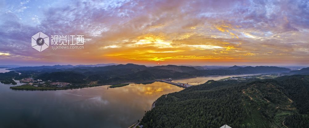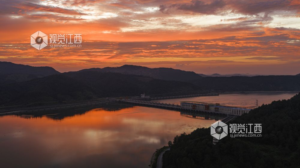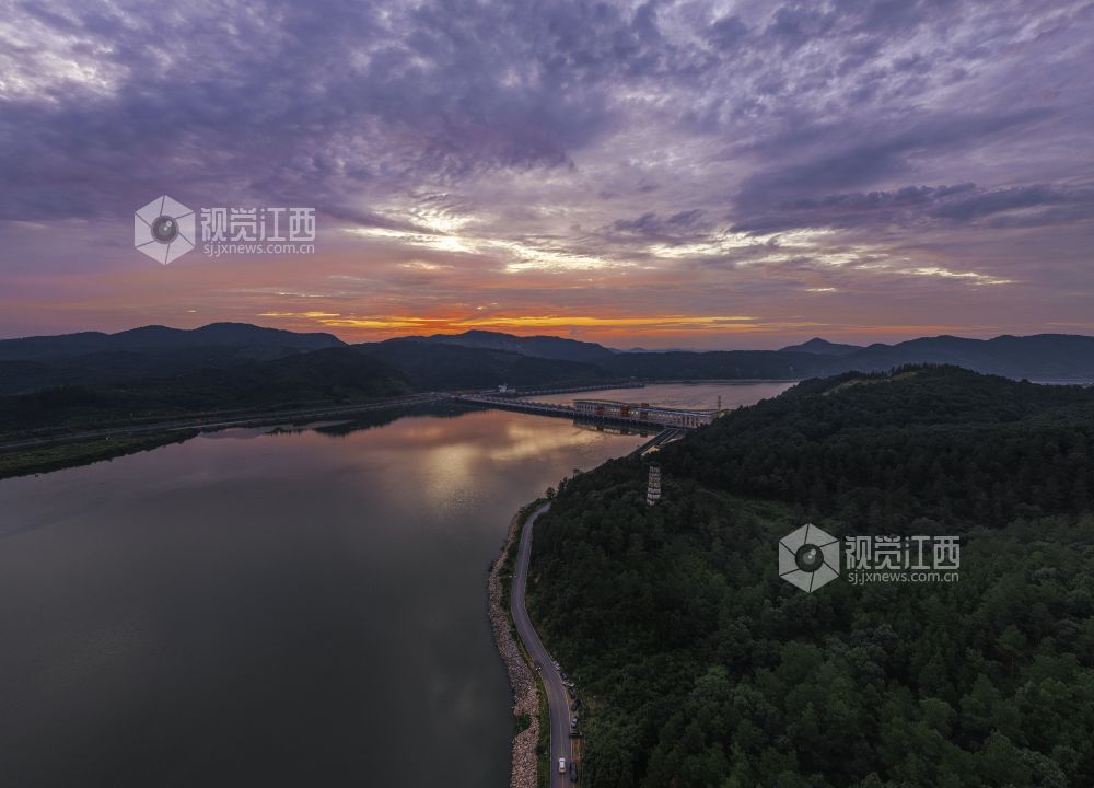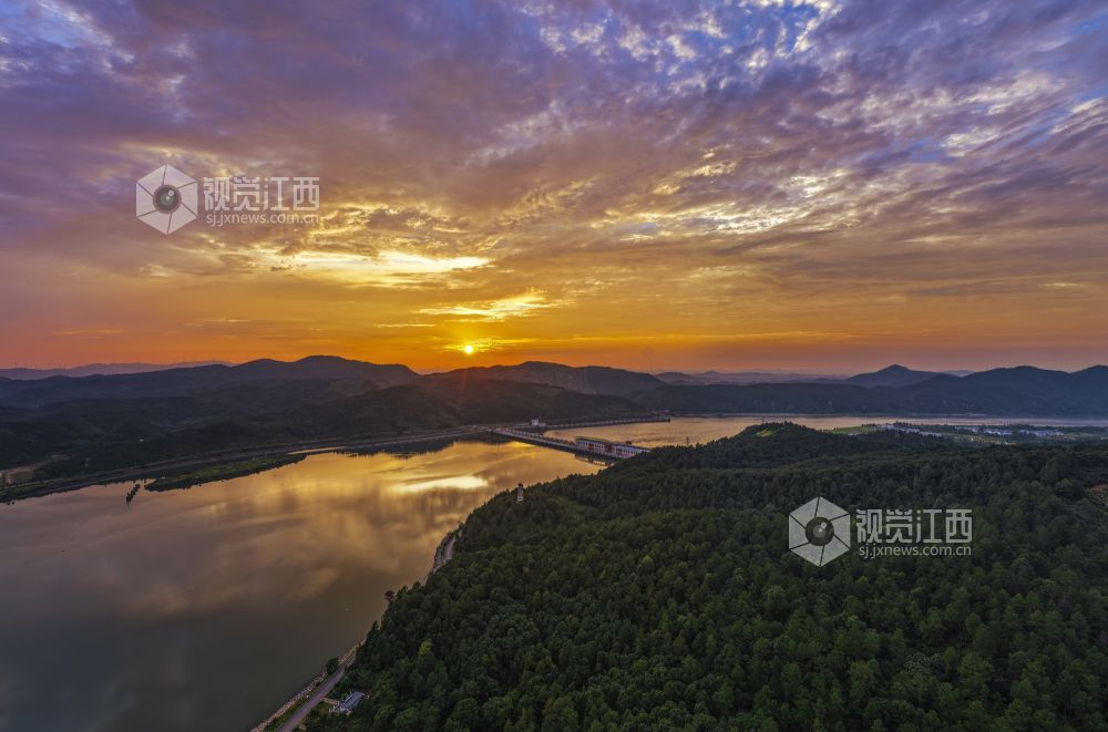 6月13日,江西省吉安市峡江县水利枢纽晚霞美景如画。夕阳西下,橘红、绛紫色云霞铺满天际,与波光粼粼的江面、沉稳伫立的水利枢纽相映成趣。近年来,峡江县践行生态理念,让水利工程与自然和谐共生,这如诗如画的晚霞也吸引众多游客和摄影爱好者前来打卡。
