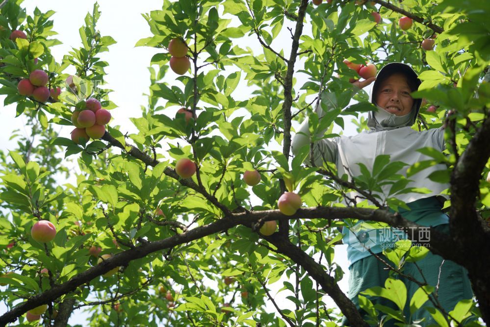 6月17日,位于江西省瑞昌市横立山乡全胜村的李子喜获丰收,吸引了众多游客前来采摘。家门口的大红李,成了村民致富的“黄金果”。