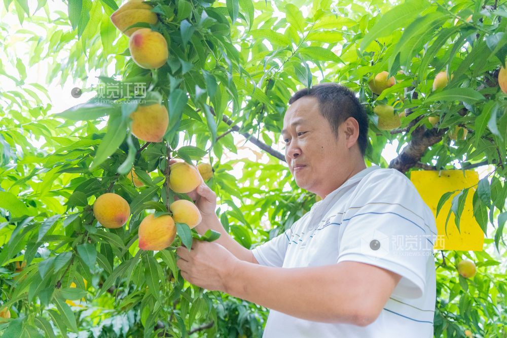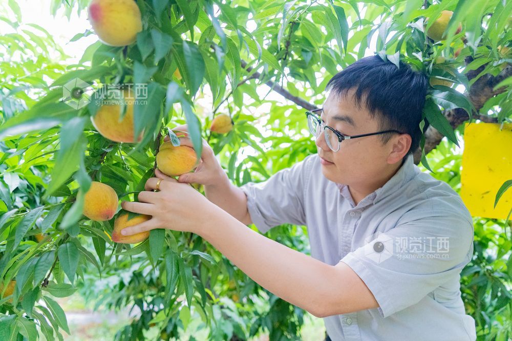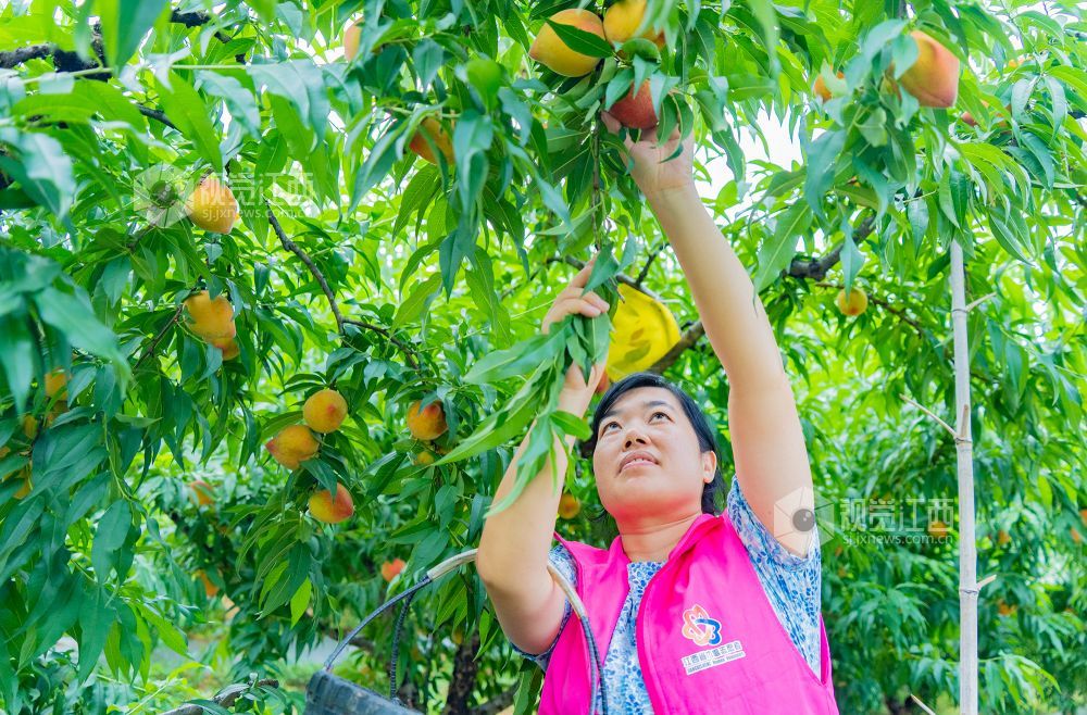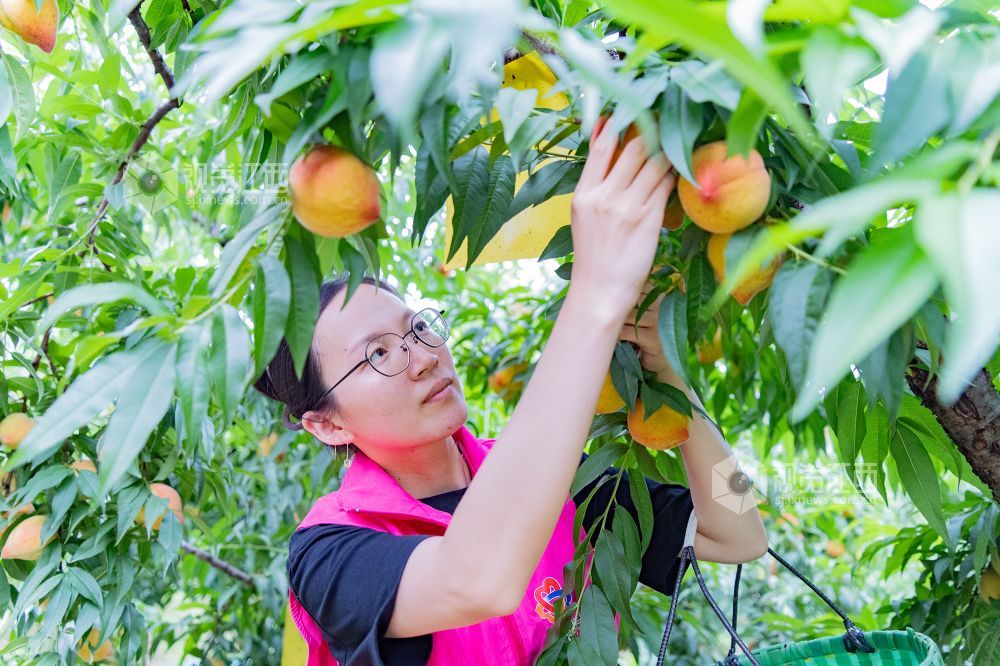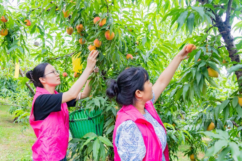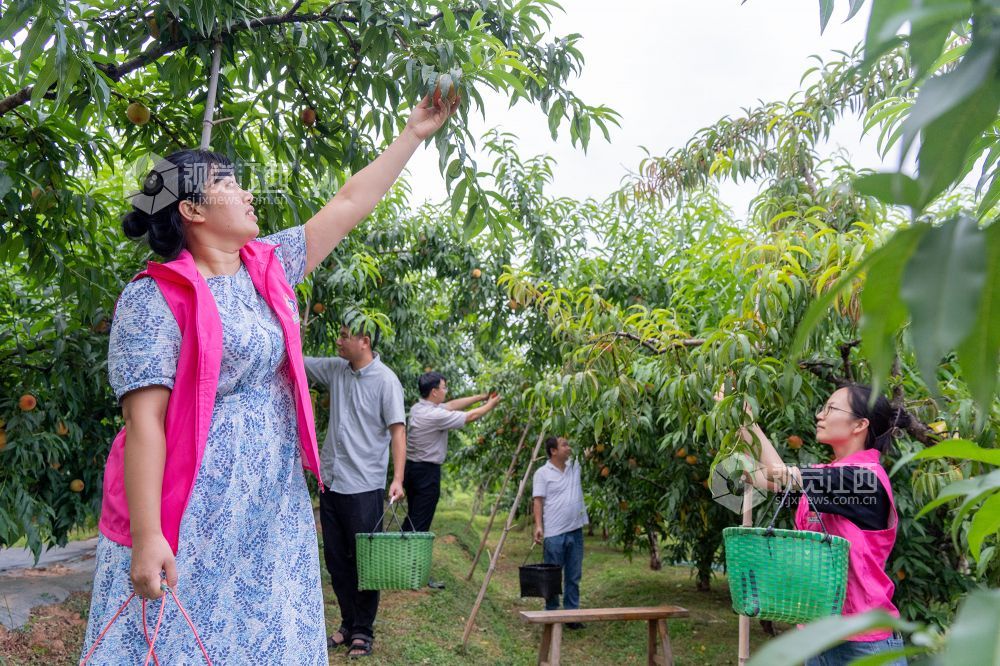 2025年6月18日,江西省金溪县对桥镇部分镇村党员干部赴该镇天子科村果业基地开展志愿助农服务,帮助缺人手的种植大户采摘黄桃。