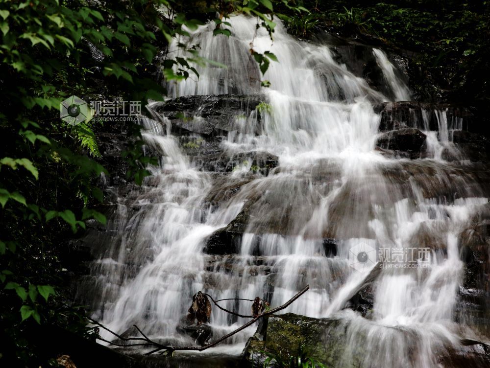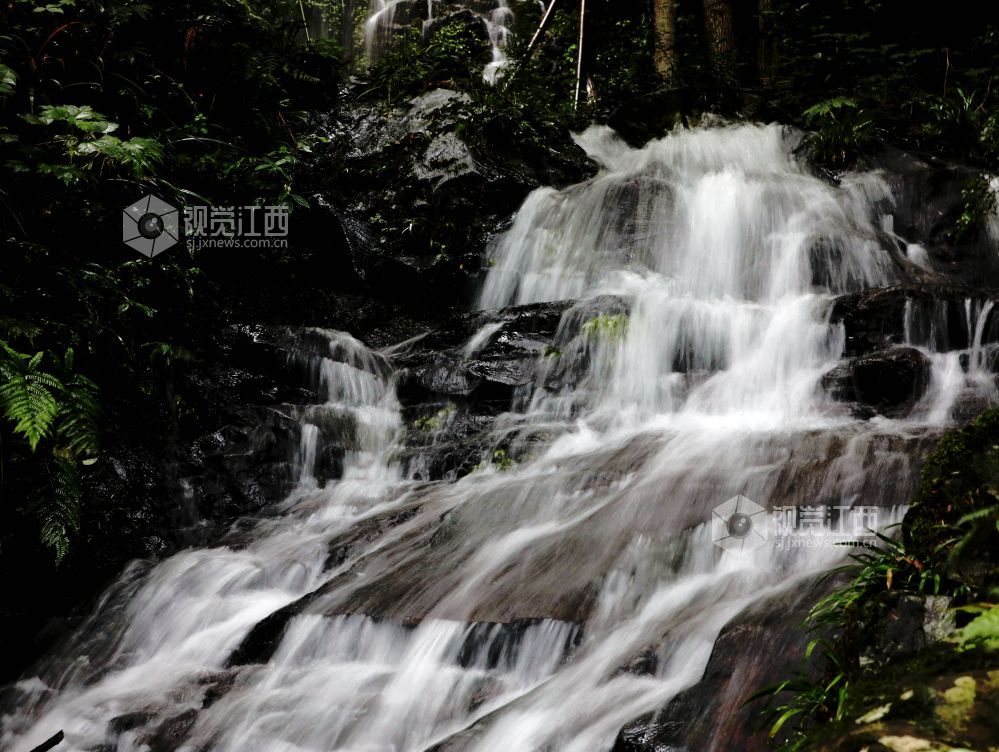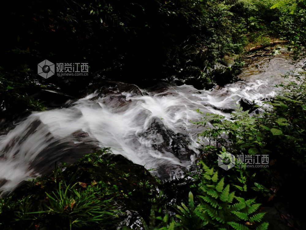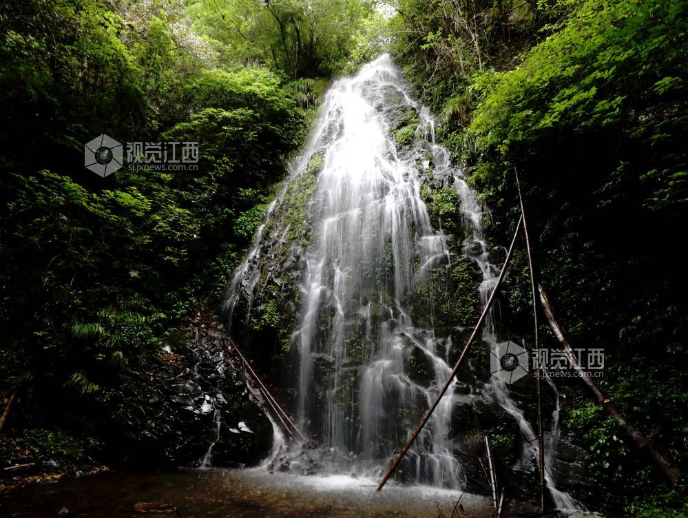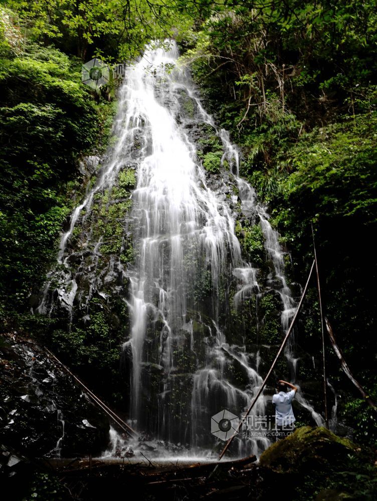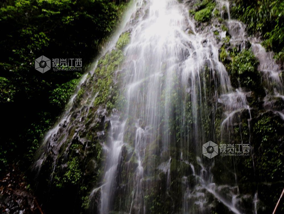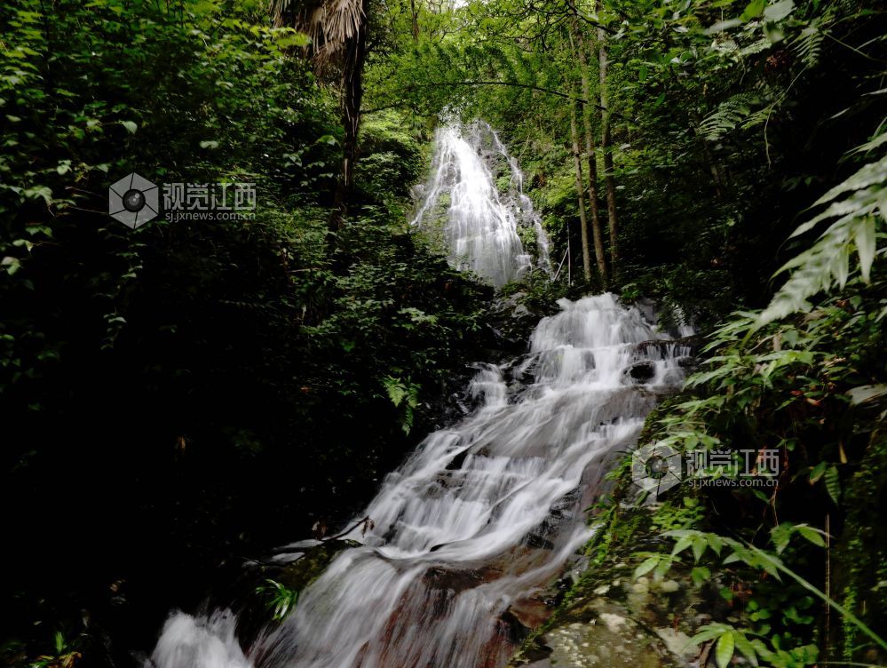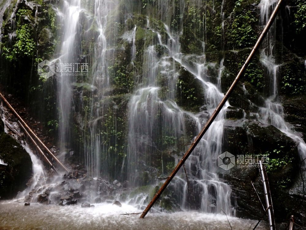 2025年6月18日,一场强降雨过后,江西省分宜县大岗山景区观音岩附近的寨里瀑布顺着山涧飞泻而下,似倚山嬉石,似飞帘垂幕,纵情欢歌,美如画卷。