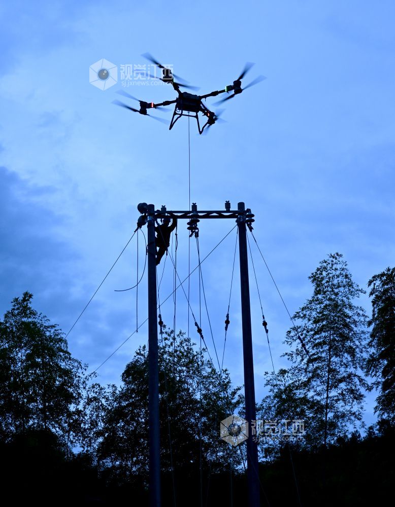 2025年6月20日,在江西省上饶市铅山县英将乡,电力施工人员正在开展放紧线作业。