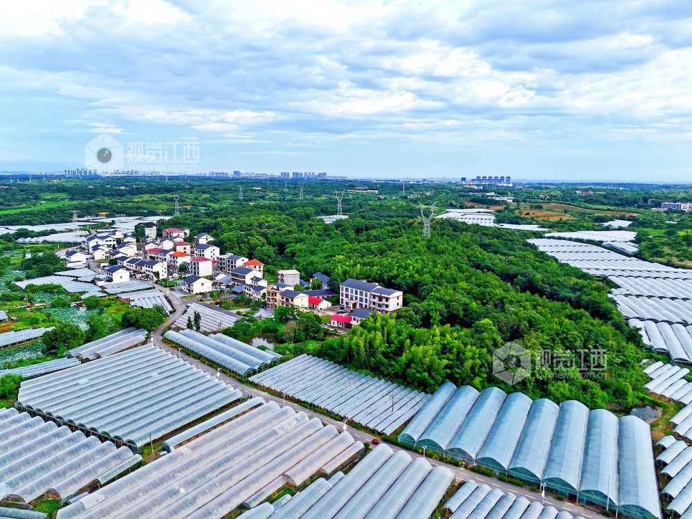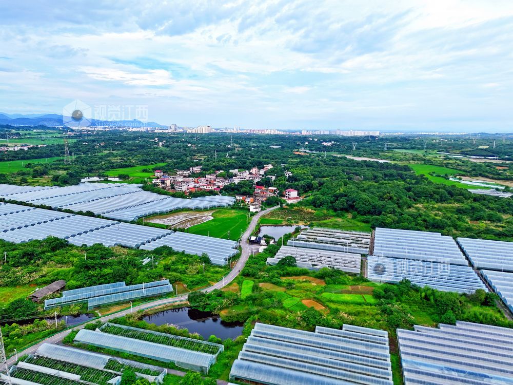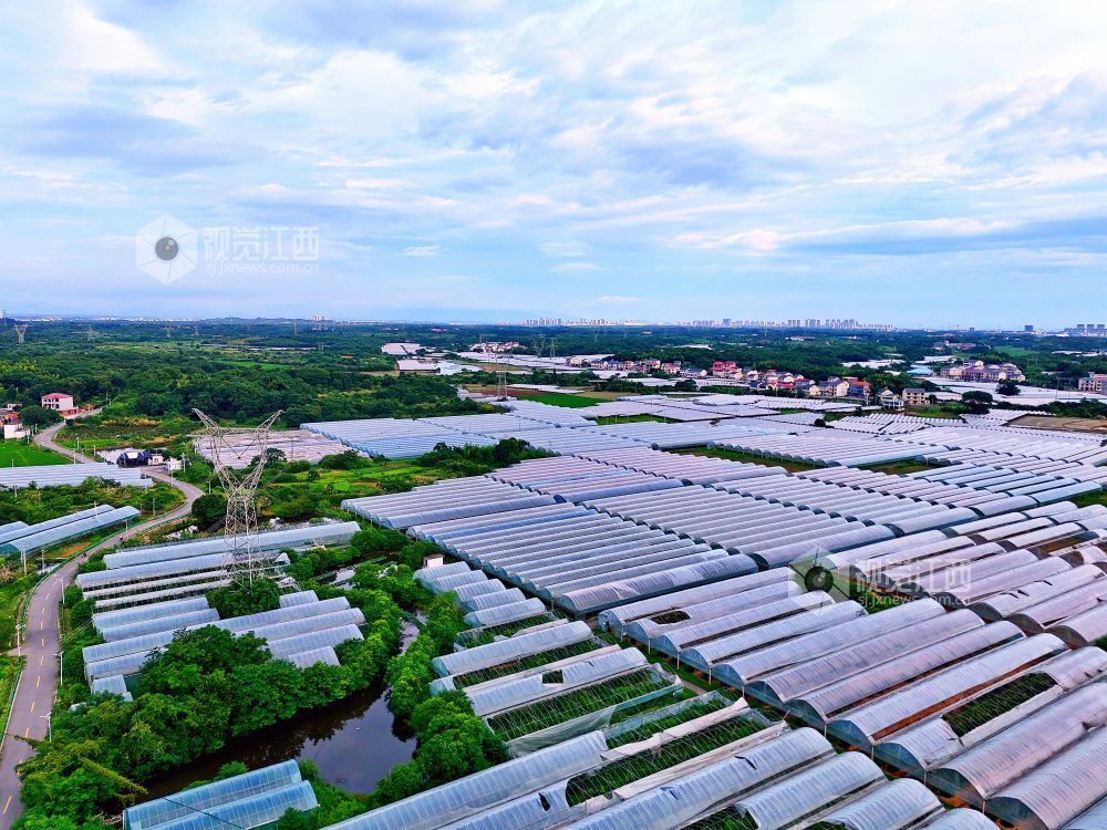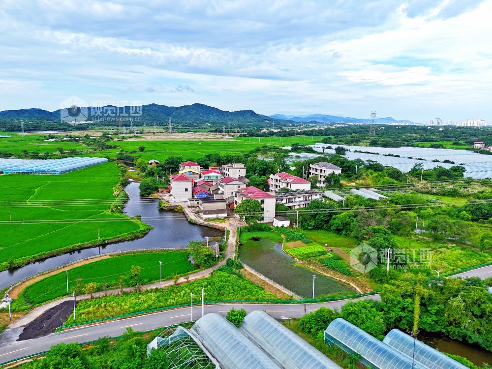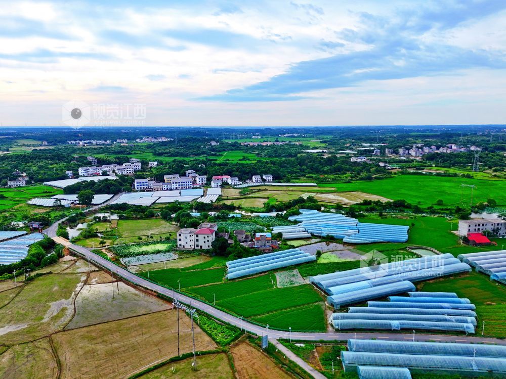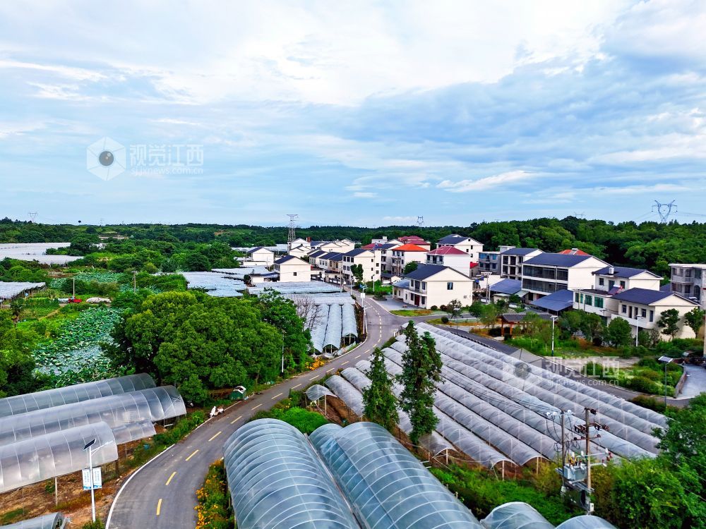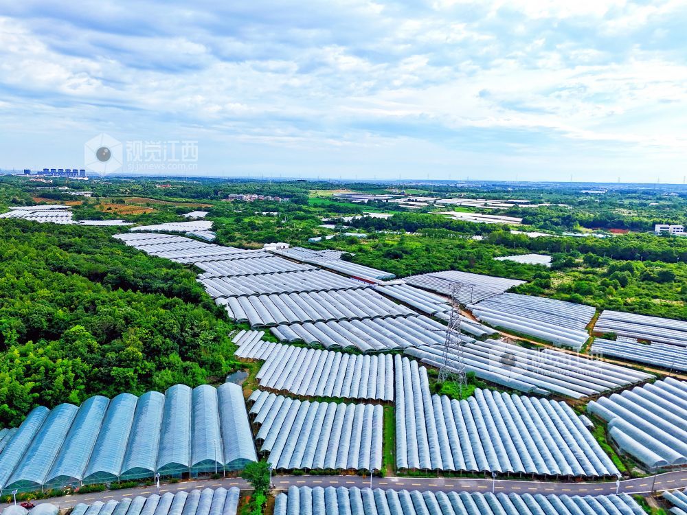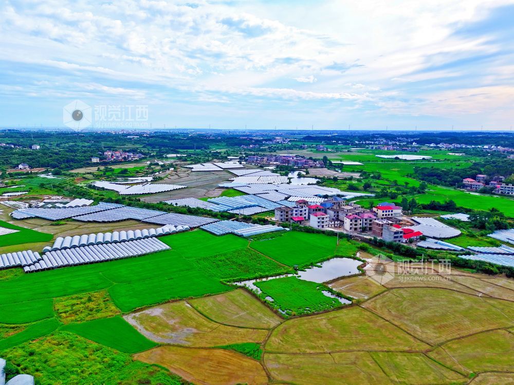 2025年6月21日,俯瞰江西省赣江新区葡萄之乡金桥乡,绿意盎然的田野里,连片的葡萄种植大棚与荷塘、村庄、道路交相辉映,呈现出一幅美丽的夏日乡村画卷。