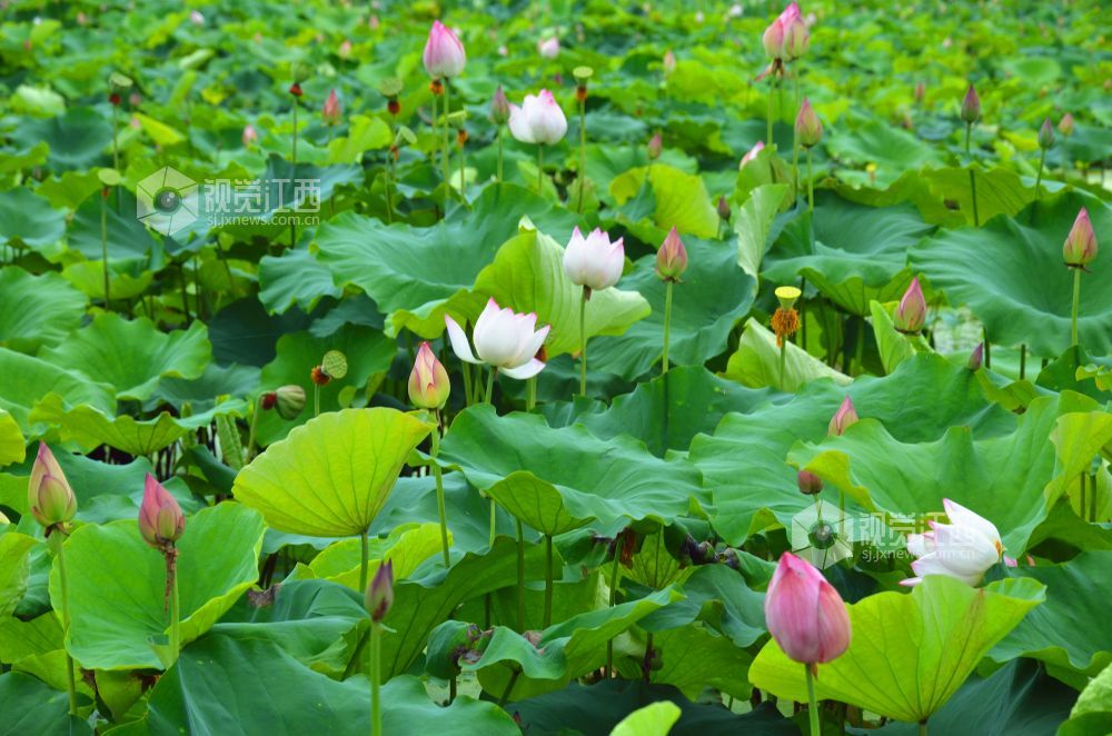 夏至时节,江西省永新县澧田镇芰田村的百亩荷塘迎来盛花期。粉白相间的荷花在碧叶间亭亭玉立,或含苞待放,或恣意盛开,微风拂过,荷香四溢,绘就一幅“映日荷花别样红”的生态画卷。