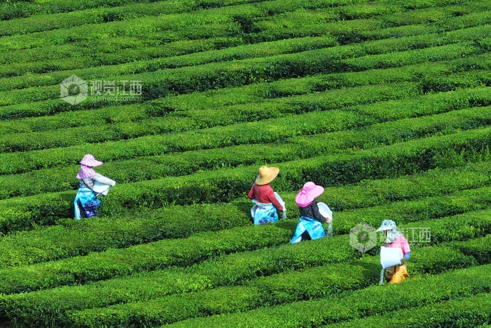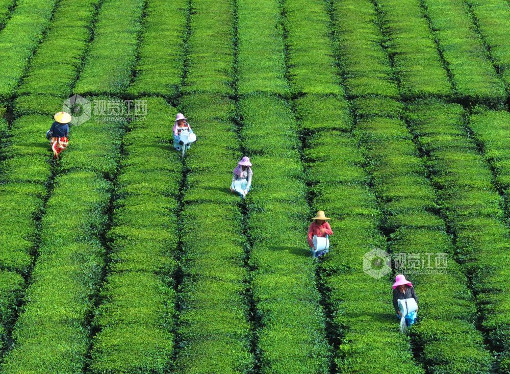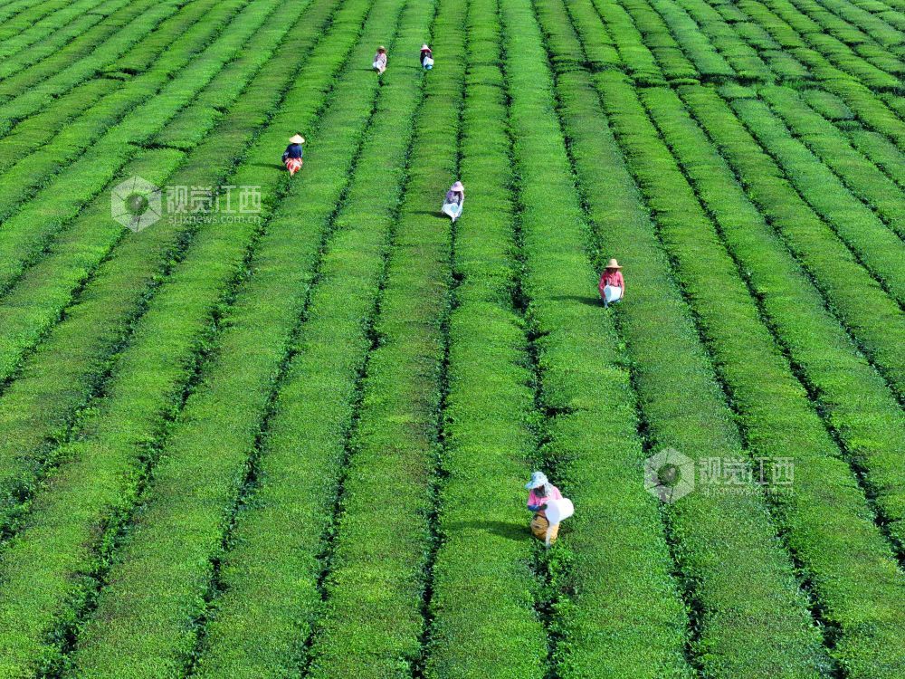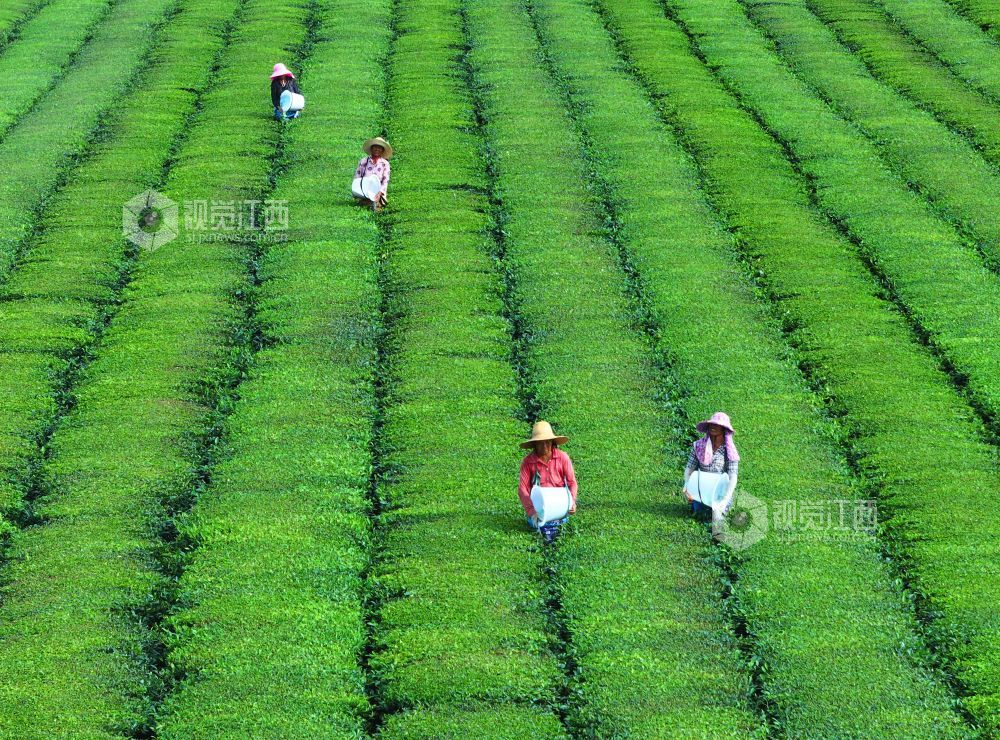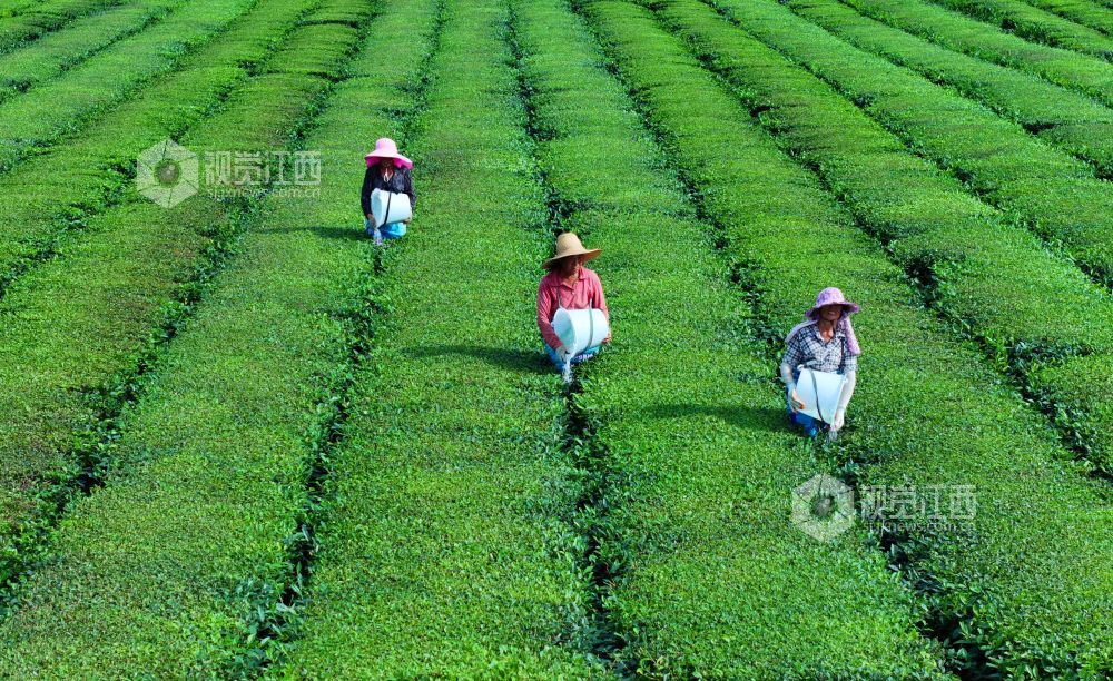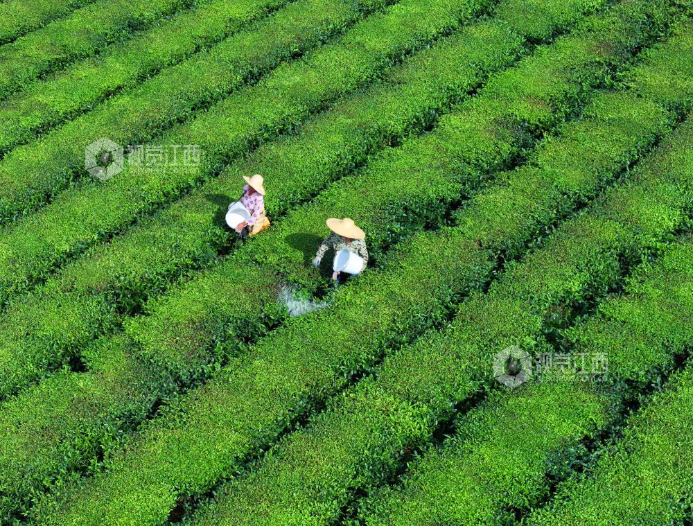 6月21日,江西省吉安市泰和县泰和垦殖场茶叶种植基地,农民正在茶园给茶树进行施肥管护工作。