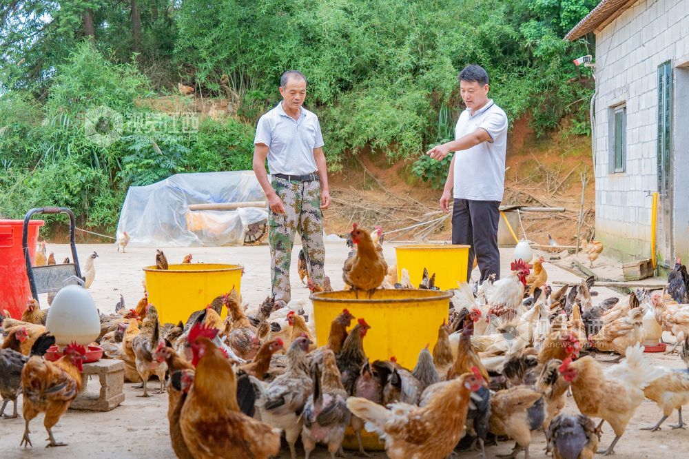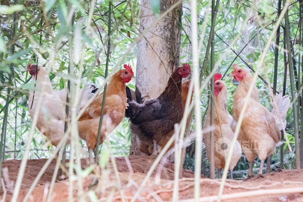 6月22日,在江西省金溪县对桥镇上付村与旸田村合办的养鸡场里,一只只毛色鲜亮的山鸡或悠闲漫步,或追逐嬉戏,或低头觅食。