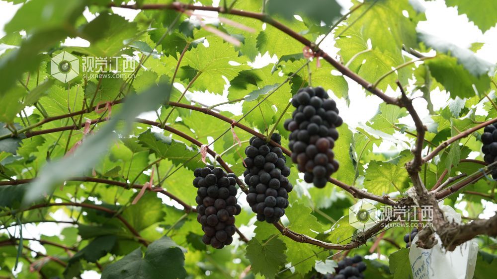 6月24日,江西省永丰县佐龙乡园华生态葡萄园的葡萄成熟,串串饱满的葡萄挂满枝头,散发着诱人的果香。