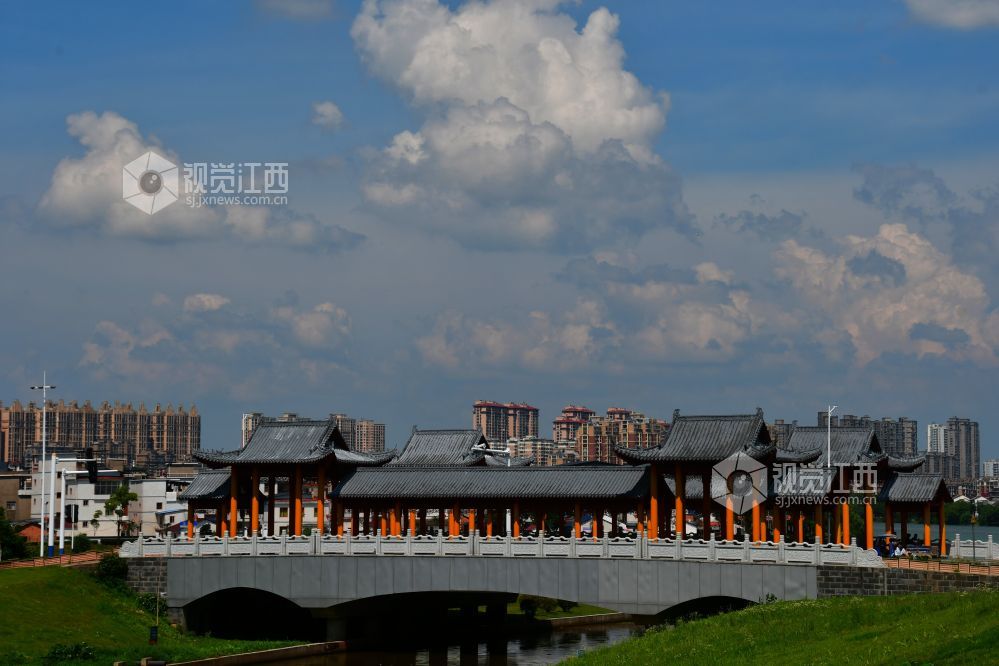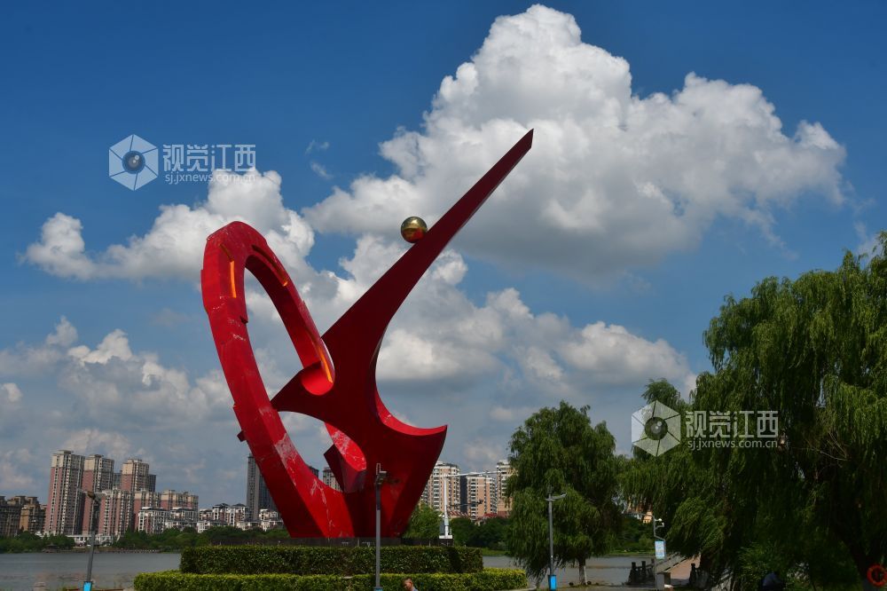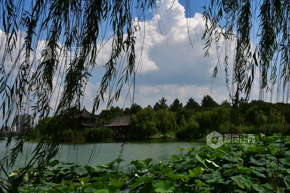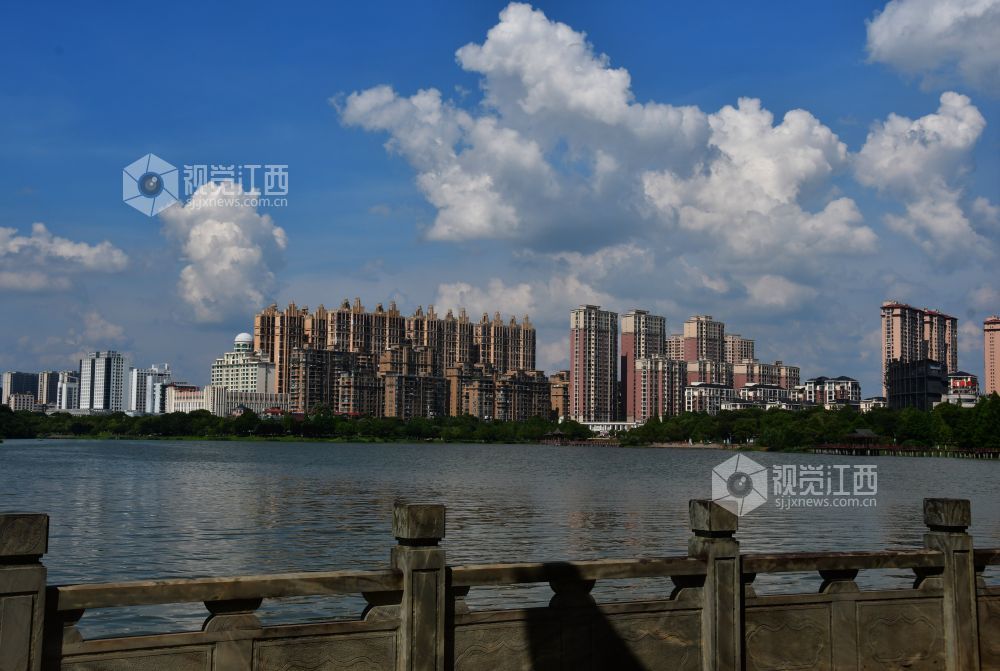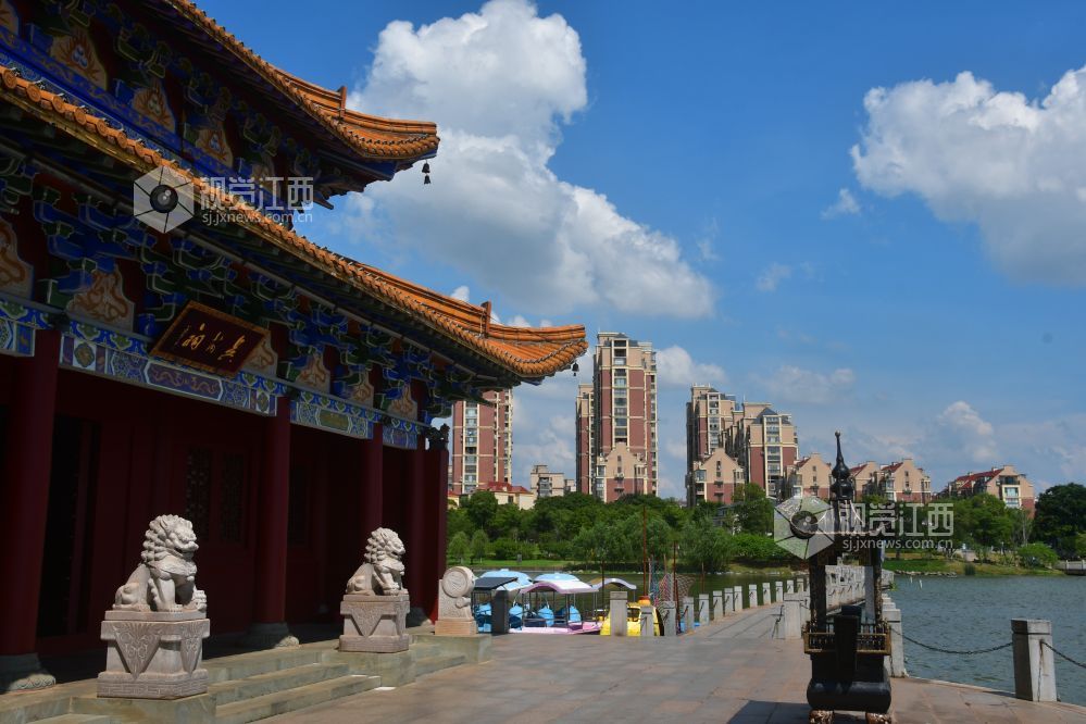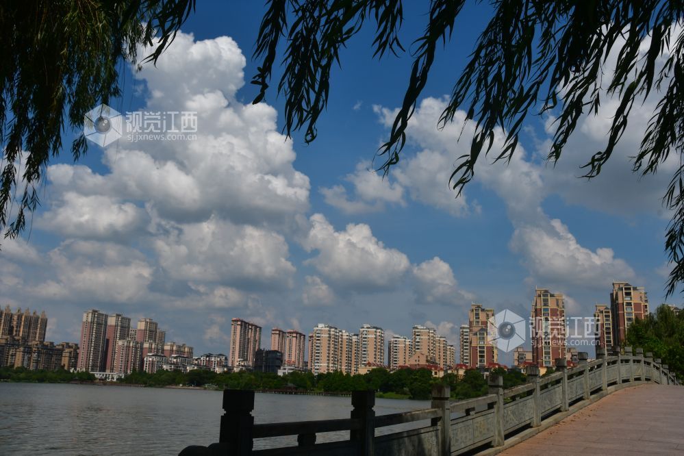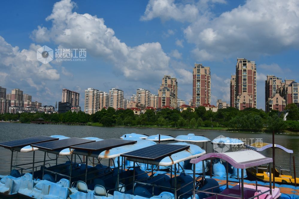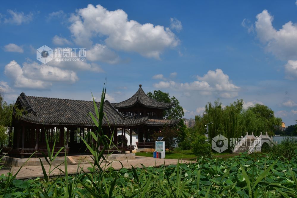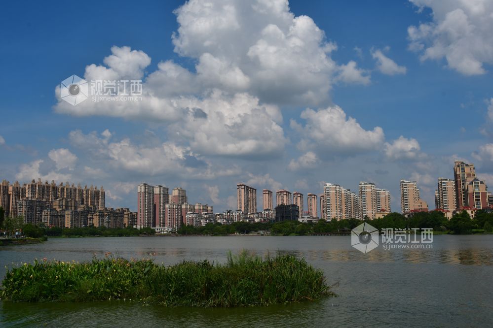 2025 年6月26日,位于江西省鄱阳县城中心的东湖在蓝天白云的映衬下景致宜人,呈现出一幅美不胜收的生态画卷。