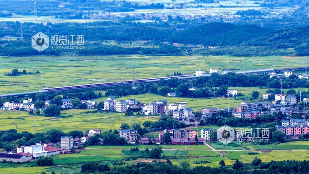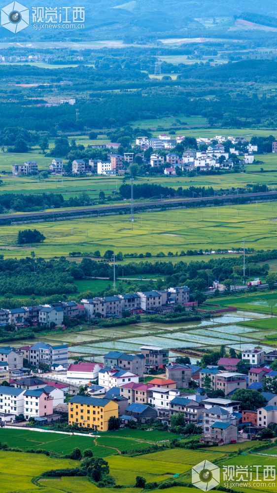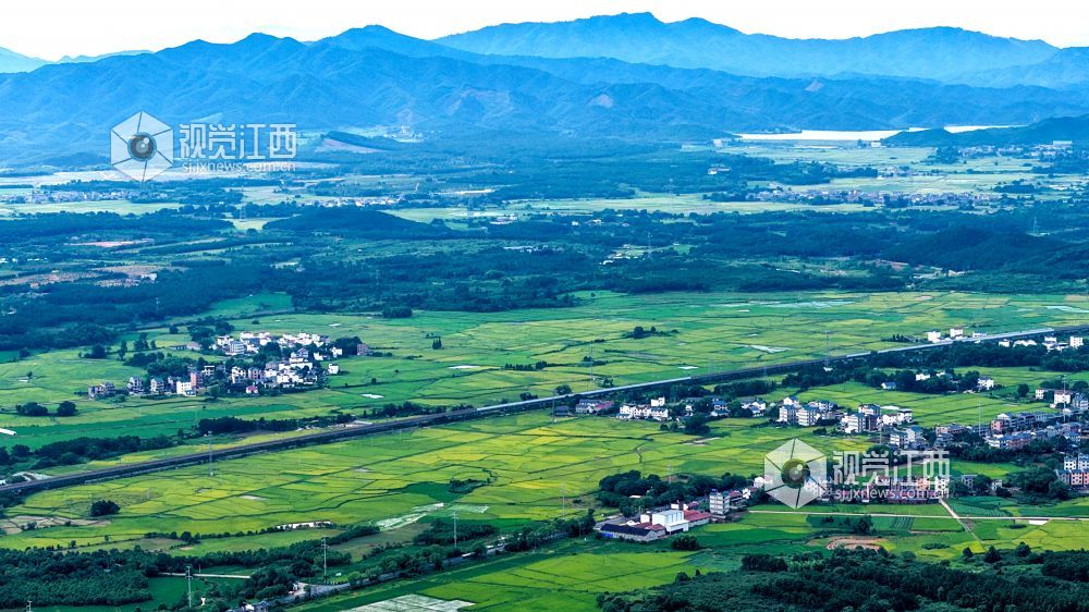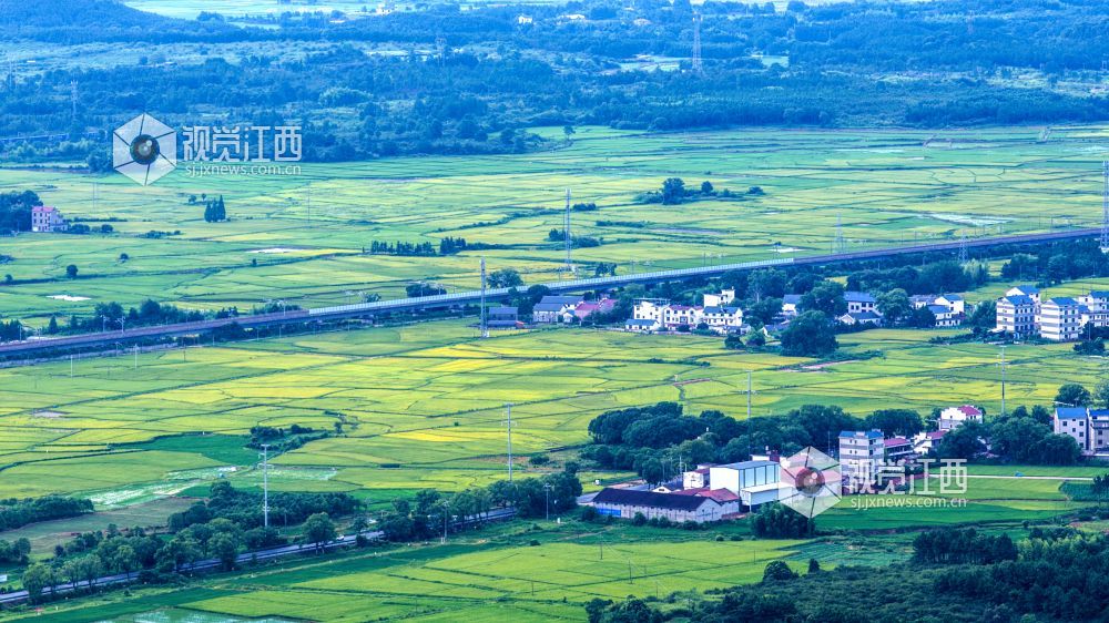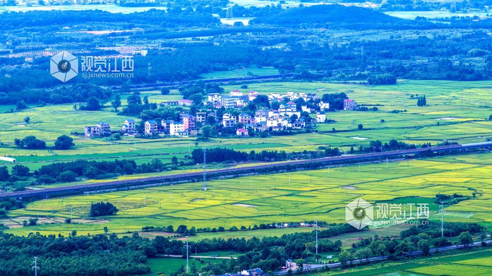 2025年6月27日,江西省吉安市峡江县水边镇的水稻丰收在望,夏日的阳光下,稻田、山林、道路与村庄构成一幅幅美丽画卷,美不胜收。
