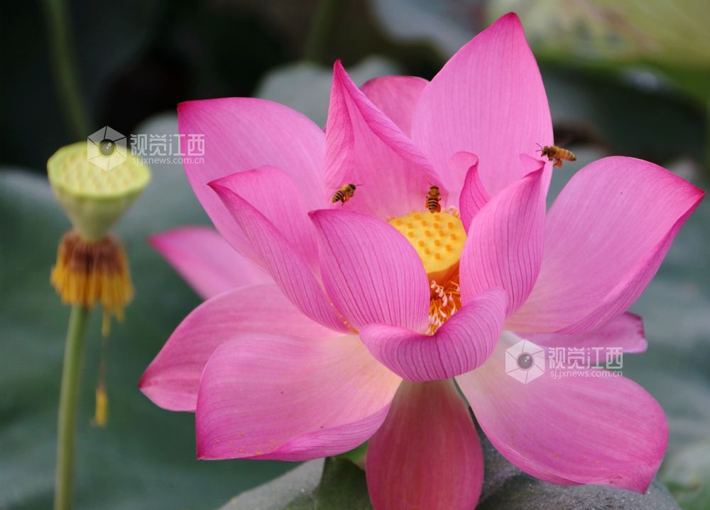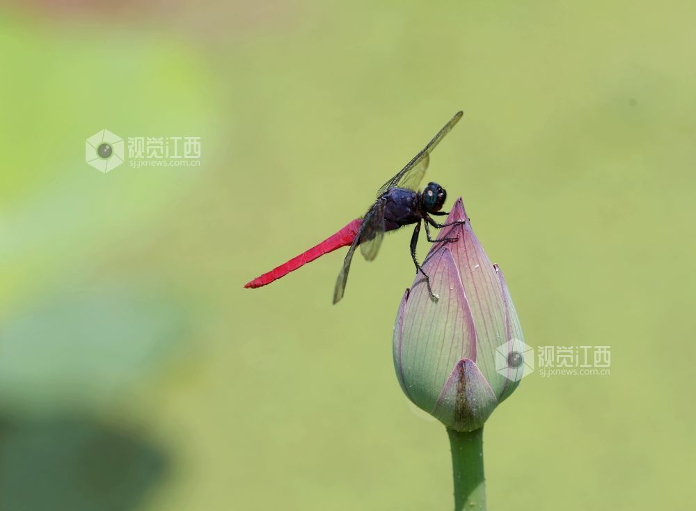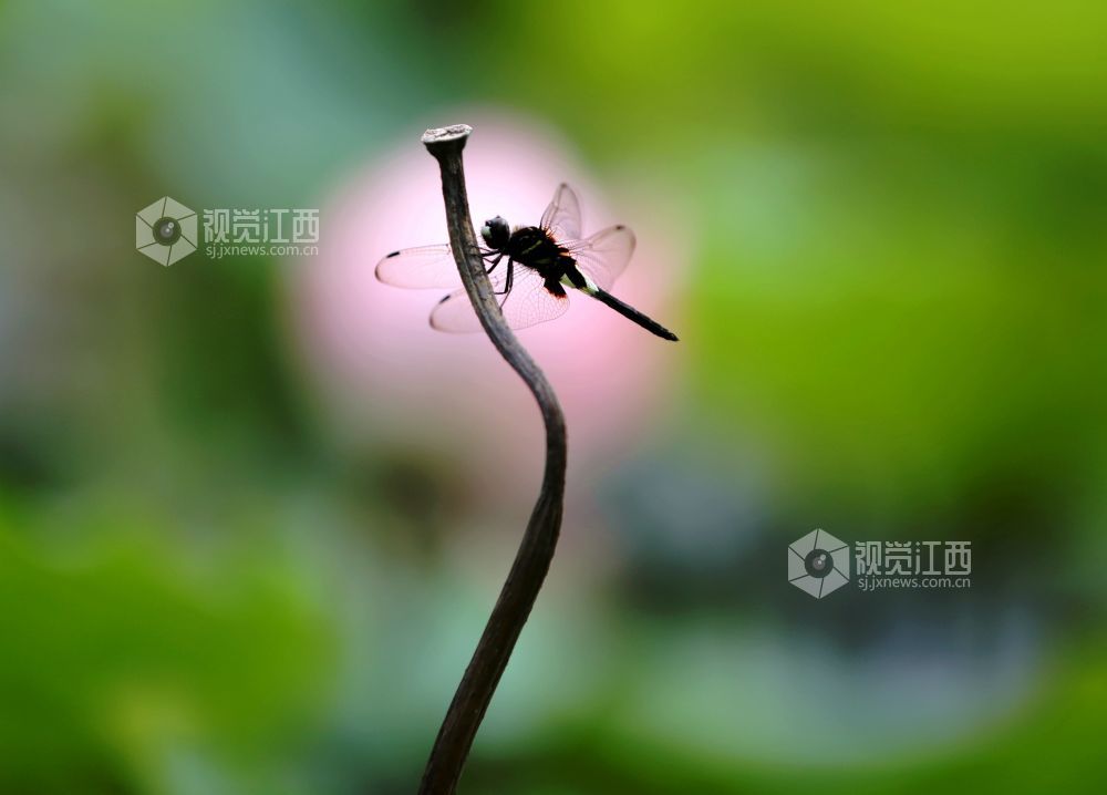 荷塘“小精灵”——蜻蜓、蜜蜂、蝴蝶、小鸟也纷纷登场,与舞动的荷花、莲蓬相伴嬉戏,看似平静的荷塘里热闹非凡,构成了一幅幅美丽和谐的生态画卷。