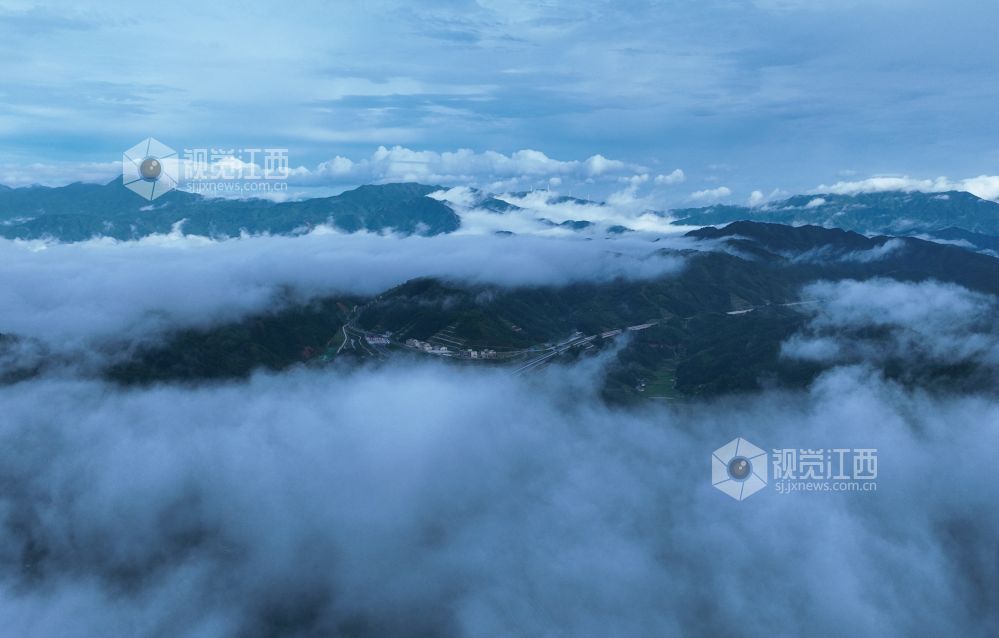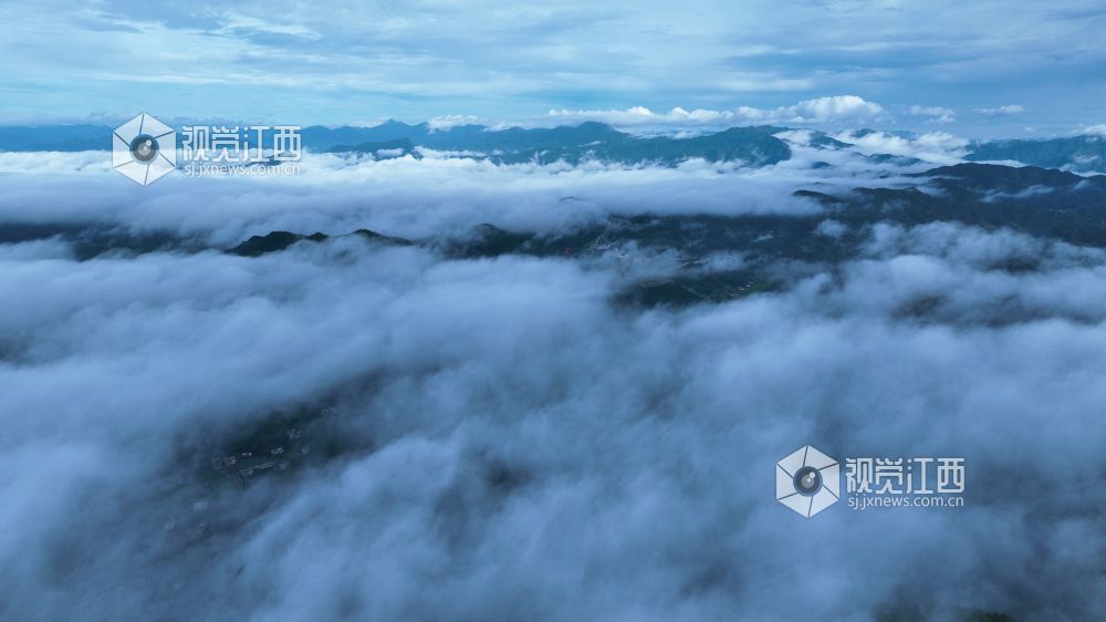 2025年6月30日,江西省吉安市遂川左安乡村,云海翻涌成画,山峦在云雾中若隐若现,与蓝天、青山相融,勾勒出静谧悠远的乡村盛景。