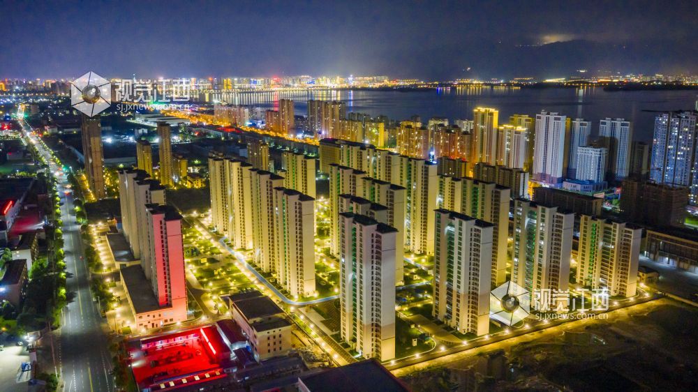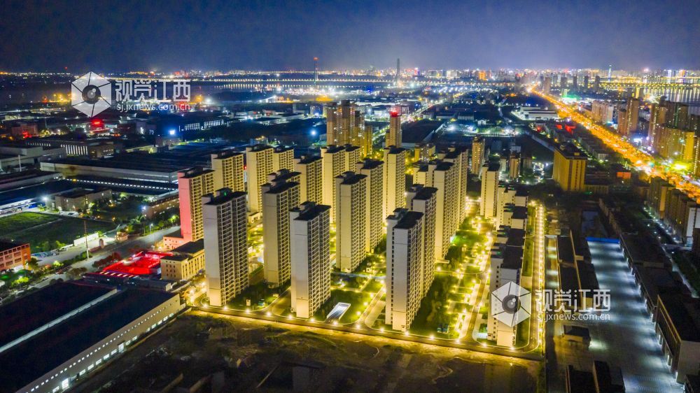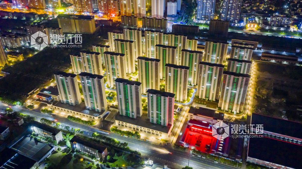 2025年7月1日,俯瞰江西省九江经济技术开发区安永人家四期装配式钢结构保障房,灯光璀璨,美不胜收。
