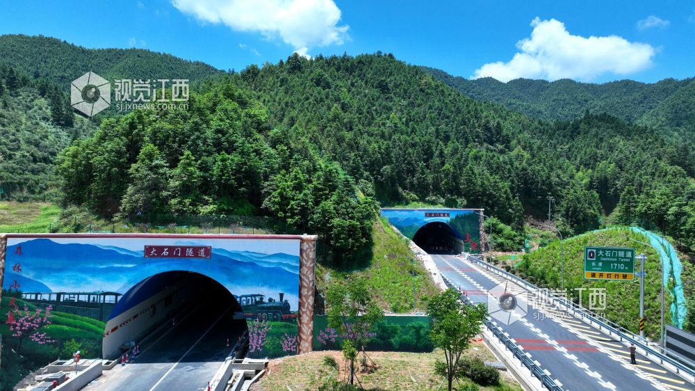 2025年7月3日,即将通车的江西省重点工程遂(川)至大(余)高速,一座座隧道成为 “文化 + 绿色” 新名片,隧道洞口精心绘制了地域特色彩绘,融入当地建筑、山水、牌坊、茶文化等元素,彰显客家文化底蕴,既美化环境,又为行车增添视觉体验,成为展示当地风貌窗口。