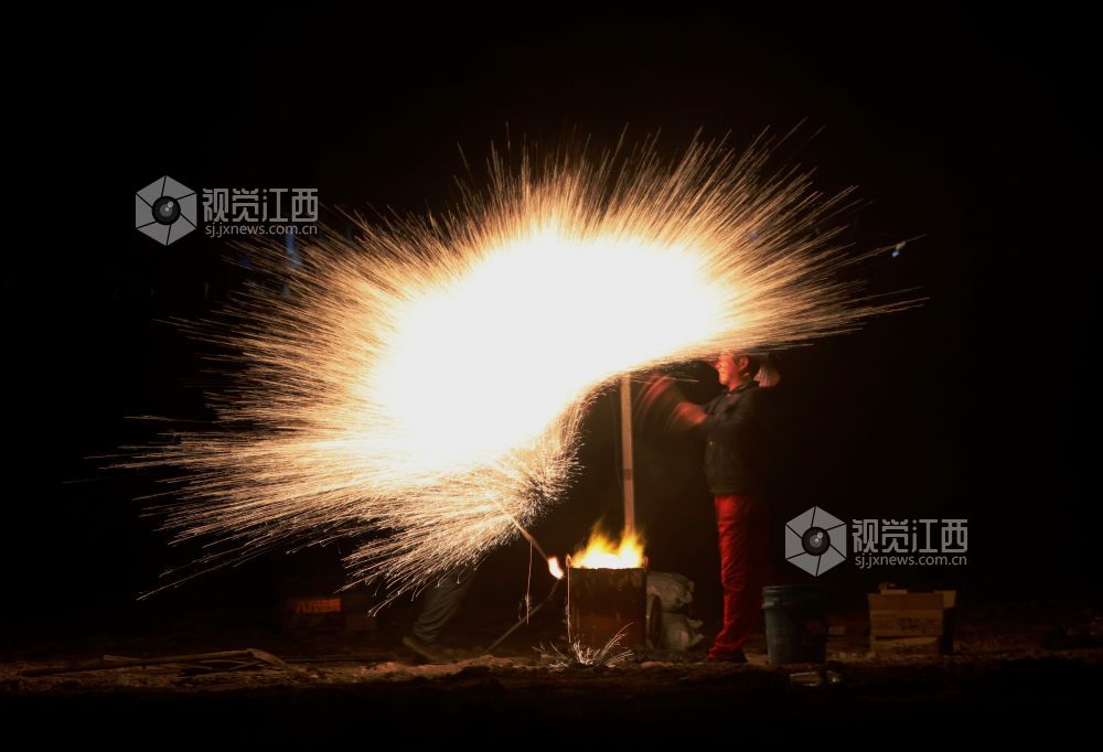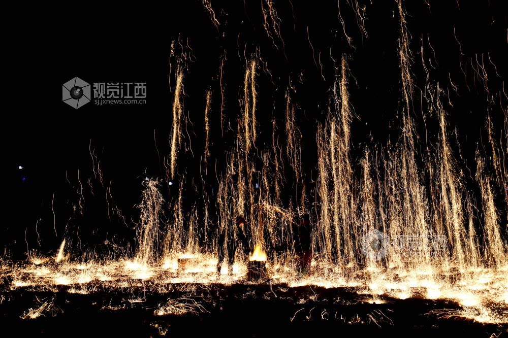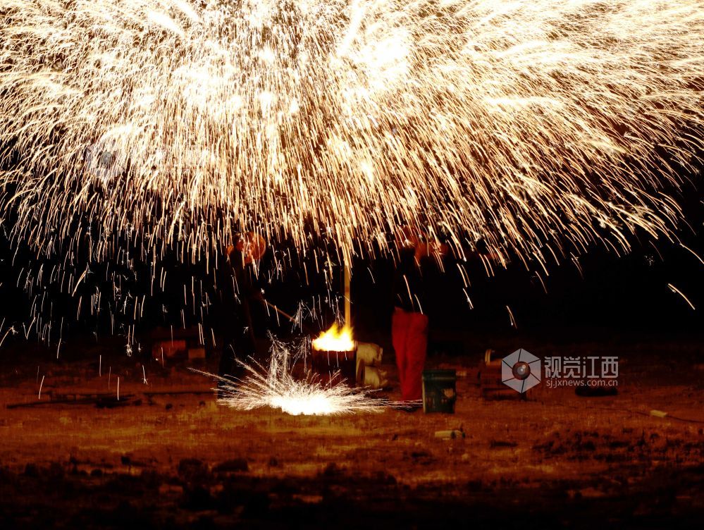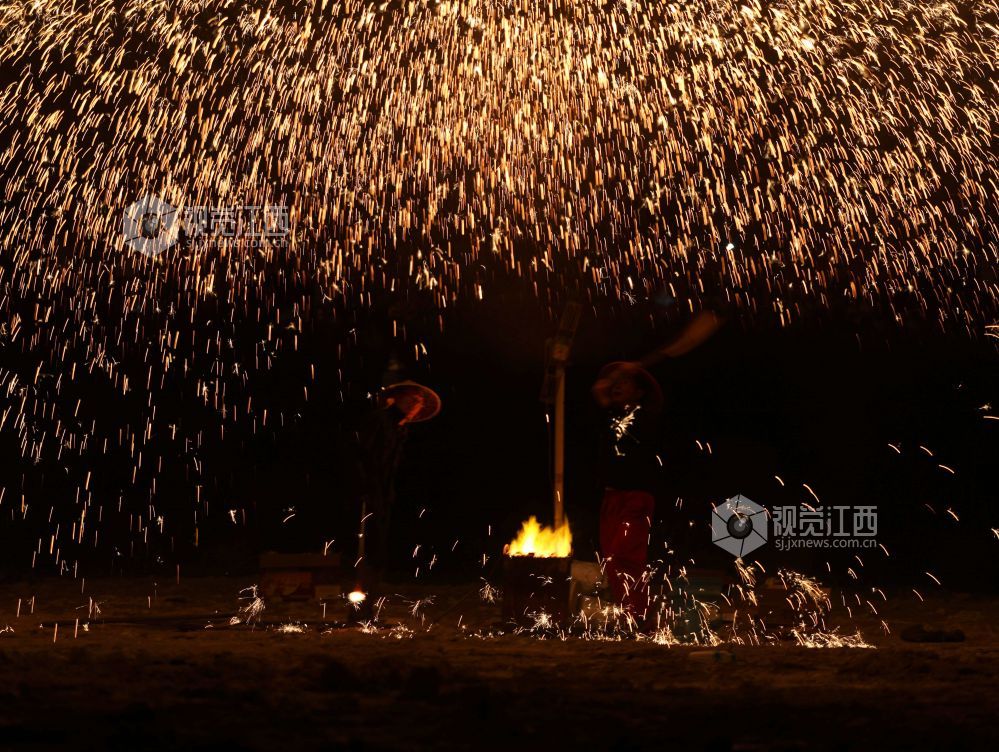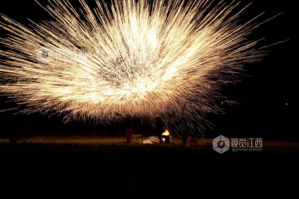 江西分宜:非遗打铁花“火”热盛夏 千年星雨点亮酷暑夜