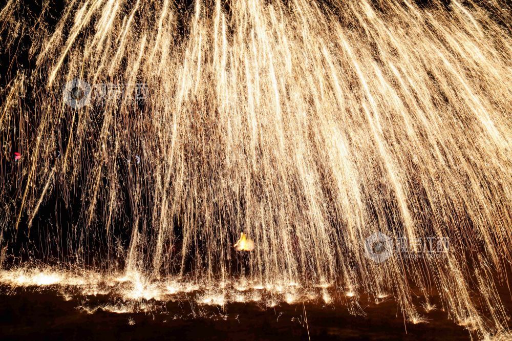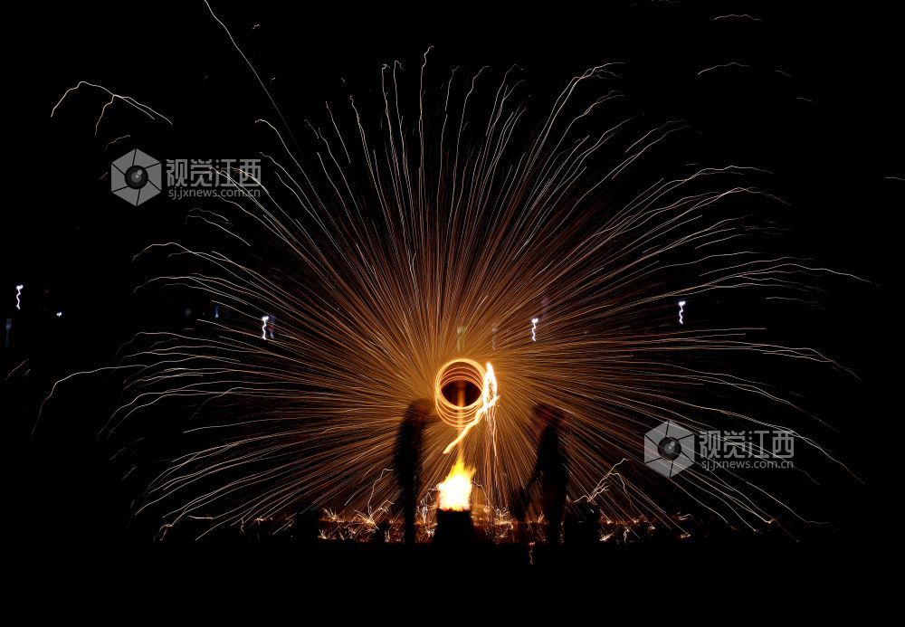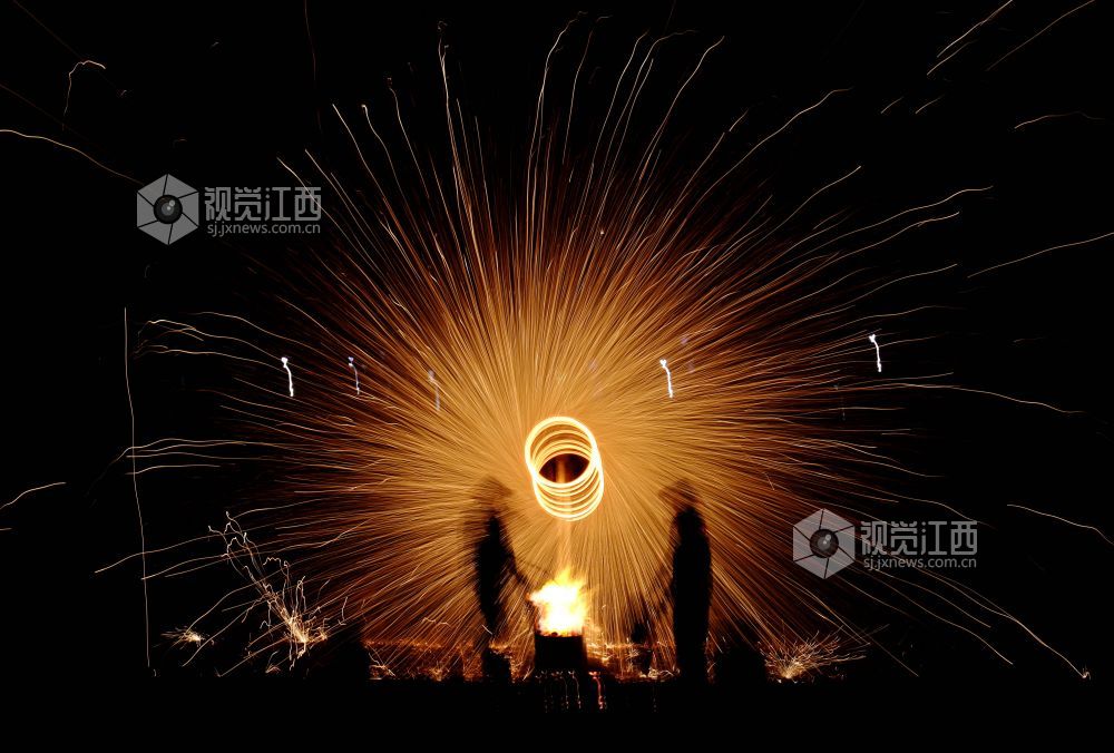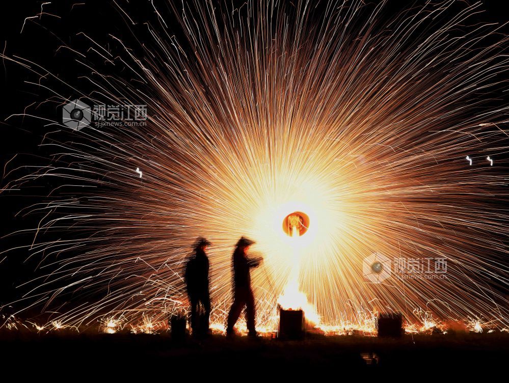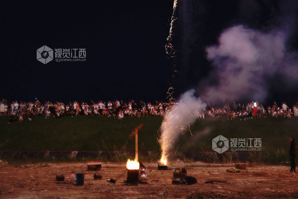 江西分宜:非遗打铁花“火”热盛夏 千年星雨点亮酷暑夜