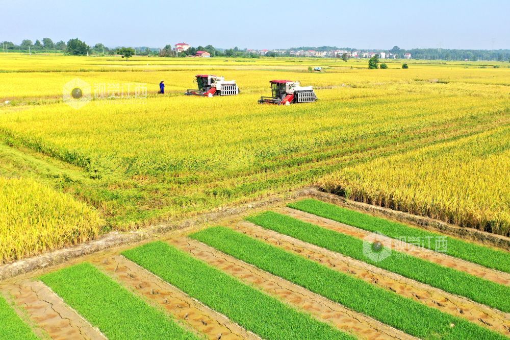 持续的高温天气下,早稻逐渐进入收割期,江西省宜春市上高县各地农民趁晴好天气,抢收早稻,确保颗粒归仓。