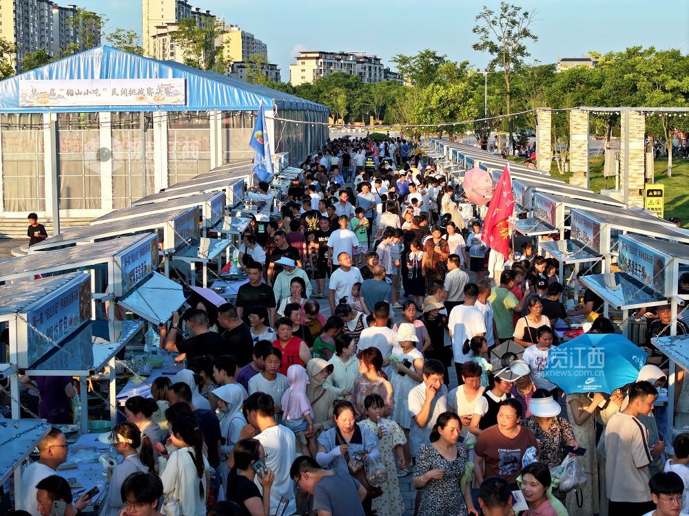 2025年7月5日,在江西省上饶市铅山县清补凉美食文化城,游客正在品尝美食。为提振消费,创新文旅融合发展,铅山县举办了“首届小吃民间挑战赛”,将美食与文化、旅游等产业有机融合,进一步深度挖掘了铅山特色美食文化资源,弘扬美食文化,提升铅山特色美食的知名度和美誉度。
