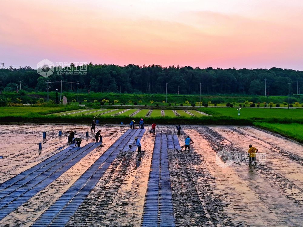 2025年7月7日,是小暑节气,江西省赣江新区永修组团马口镇农桥农作物种植专业合作社农民抢抓农时,在稻田里忙碌育秧、起秧,田间地头一派繁忙景象。