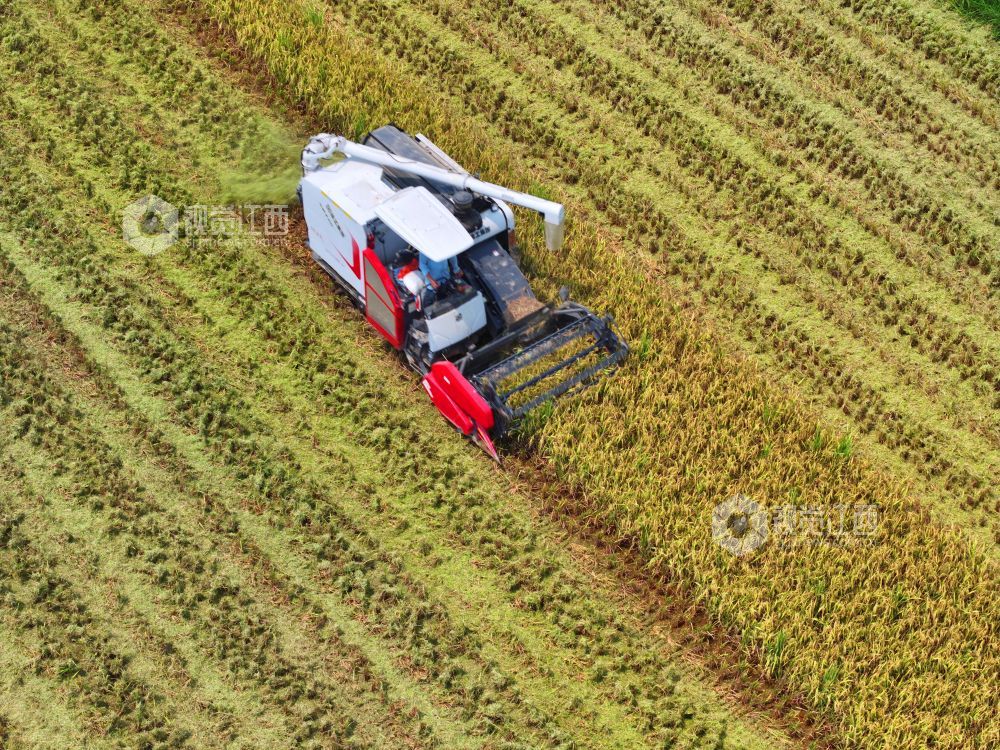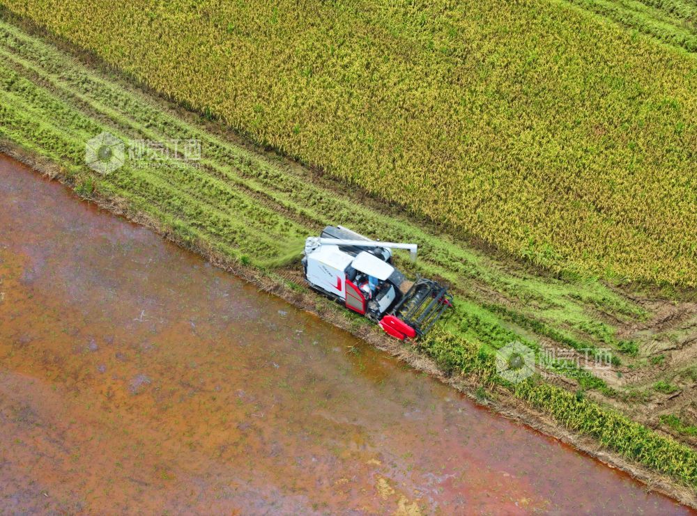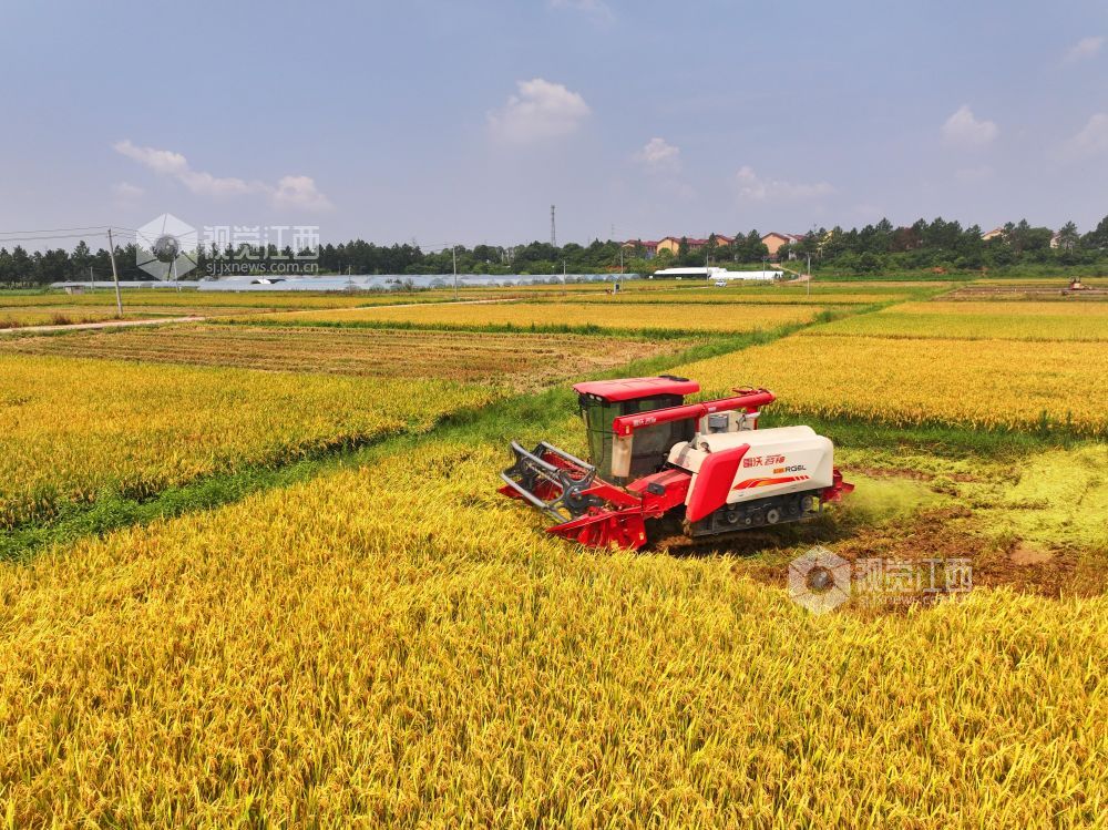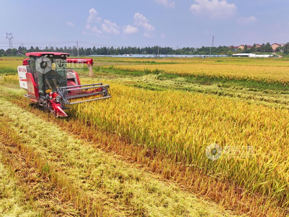 7月7日,江西省吉安市泰和县沿溪镇山东村,农民驾驶收割机正在收割早稻。