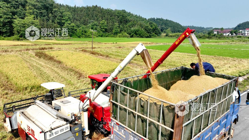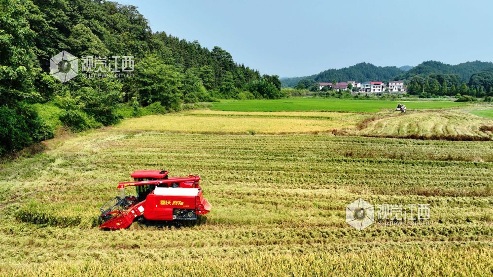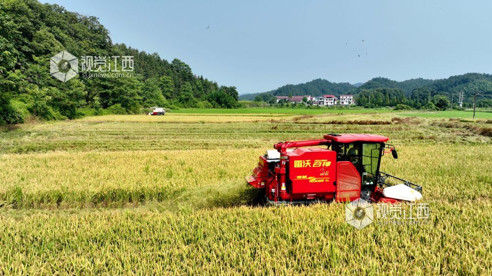 2025年7月8日,农机手驾驶收割机在江西省分宜县钤山镇田心村的稻田间穿梭忙碌。连日来,钤山镇积极组织工作人员投入“双抢”,引导当地种植户把握抢收早稻和抢种晚稻的关键期,确保粮食颗粒归仓。