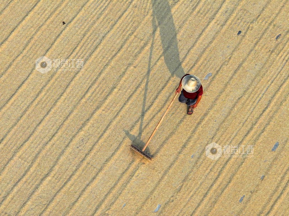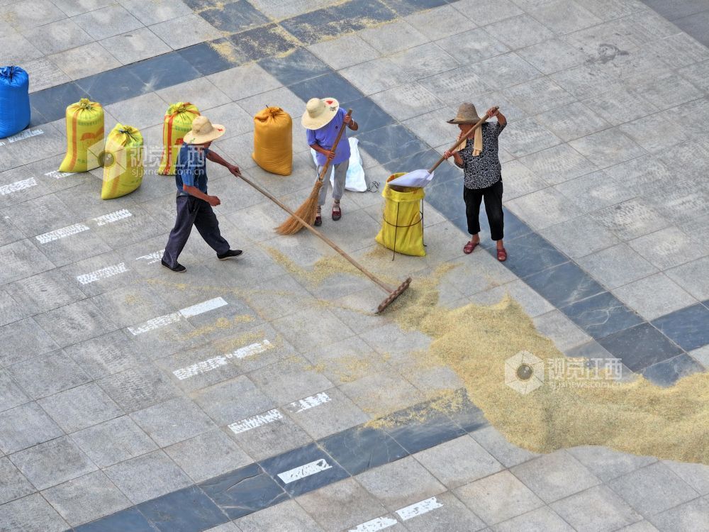 7月8日,江西省吉安市泰和县澄江镇官溪村,农民正在抢抓晴好天气晾晒稻谷,确??帕9椴?。
