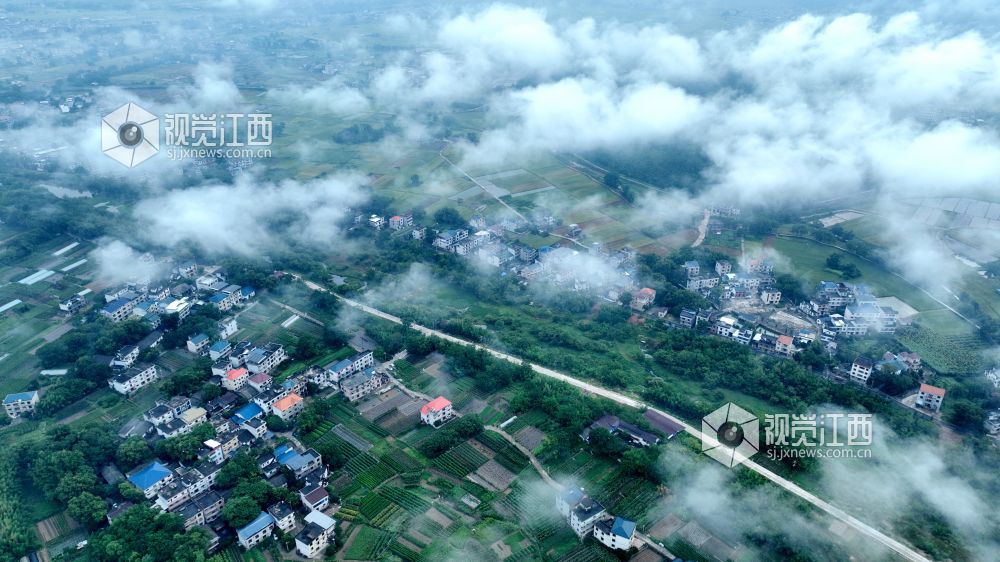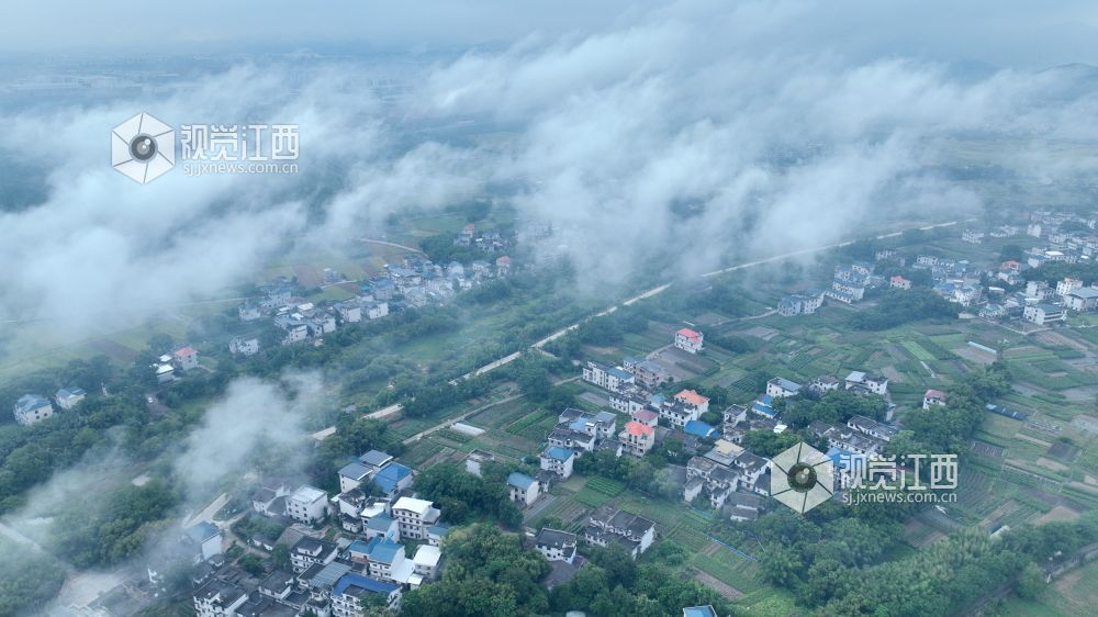 2025年7月11日,江西吉安遂川县于田镇云雾缭绕于村落田野间,与错落有致的民居、广袤的田野相互映衬,勾勒出一幅静谧秀丽的乡村生态画卷,宛如人间仙境 。