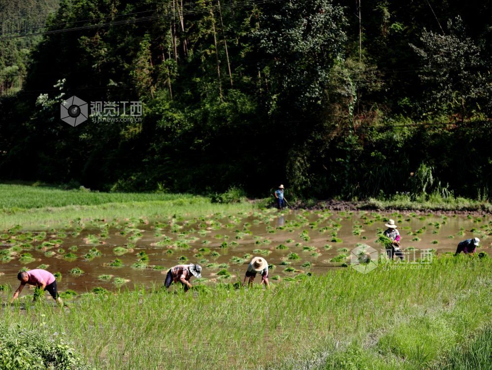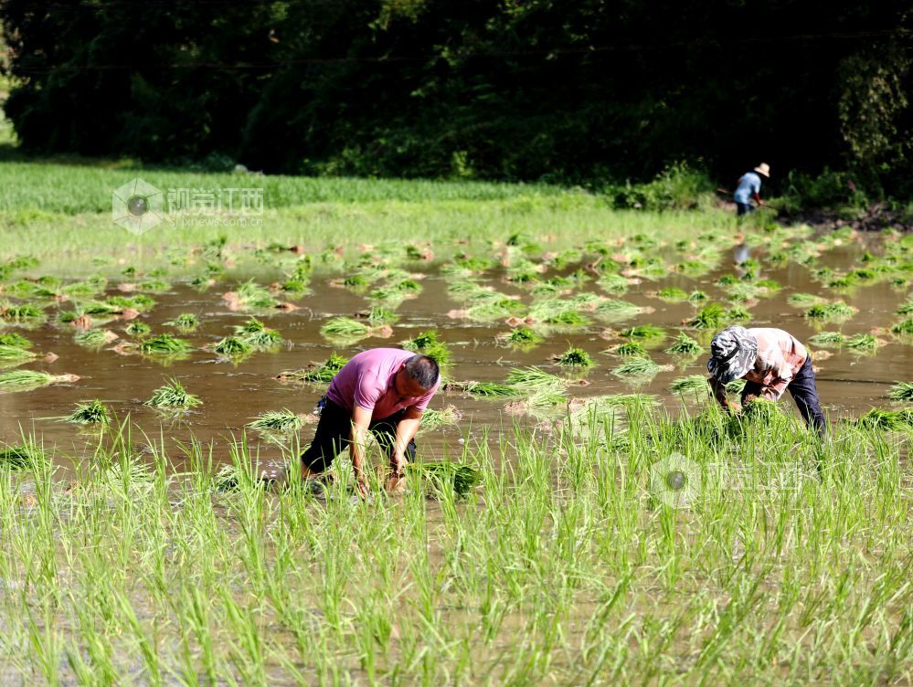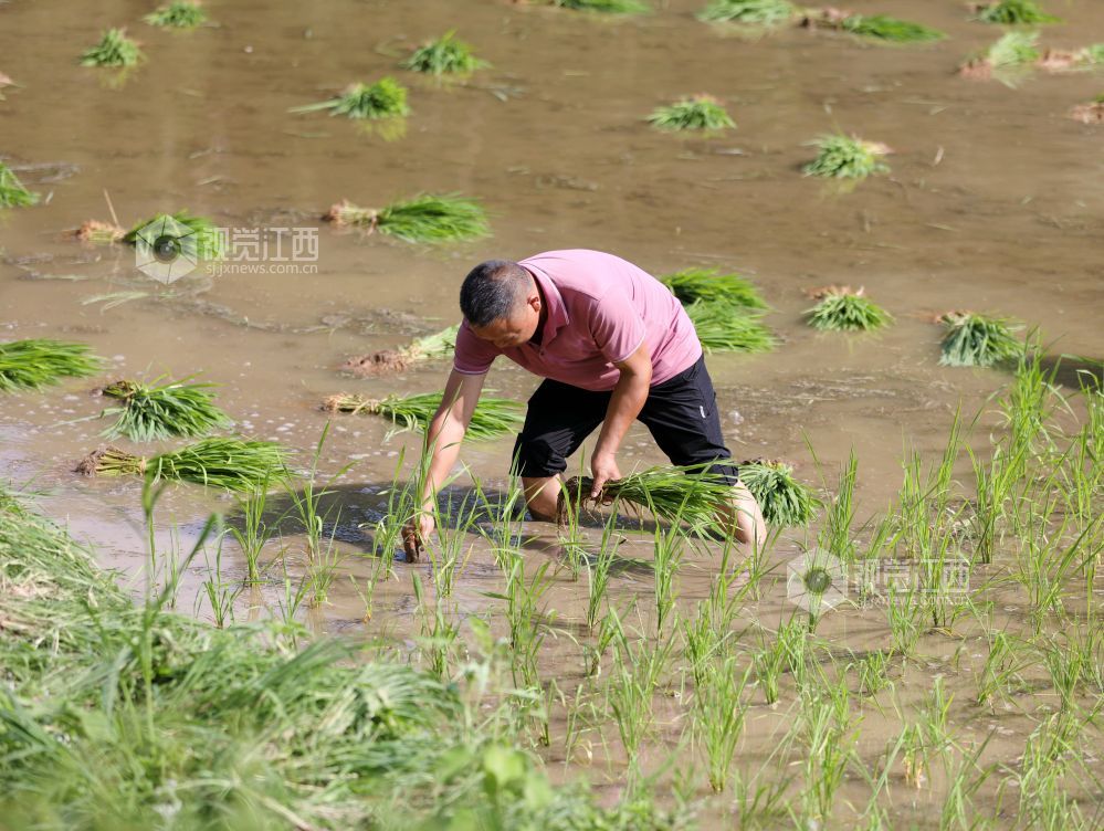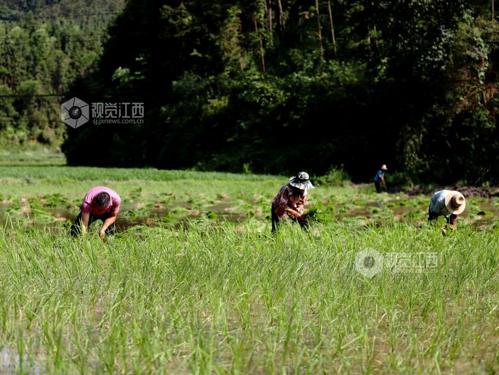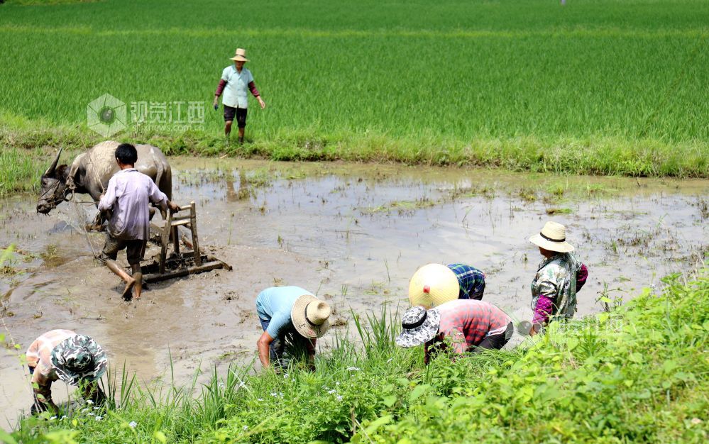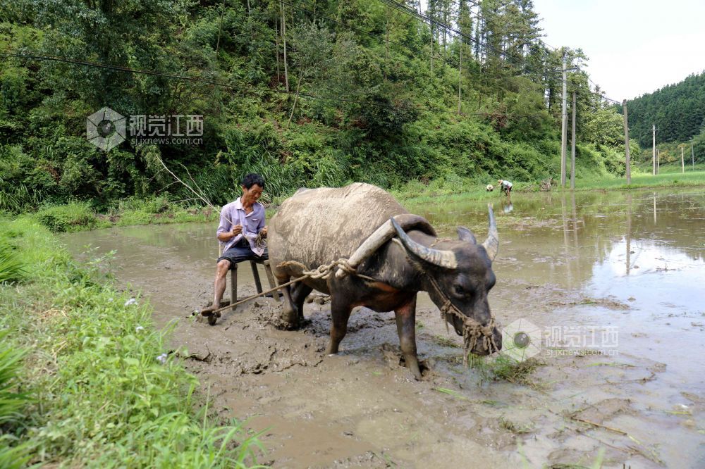 2025年7月11日,地处偏远的江西省分宜县洋江镇礼台村太源村小组开启了一年中最繁忙的“双抢”季,田间里呈现一派繁忙的劳动景象。农民赤脚下田,以最传统的方式水牛耕田、手工扯秧、插秧。