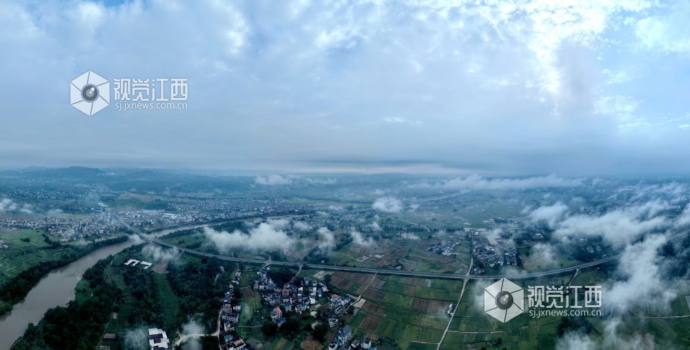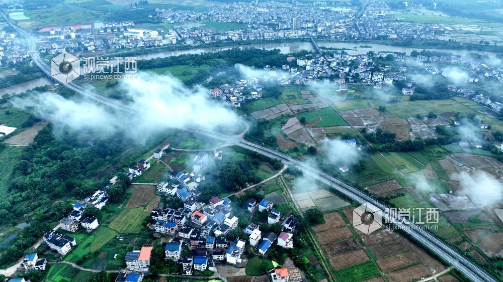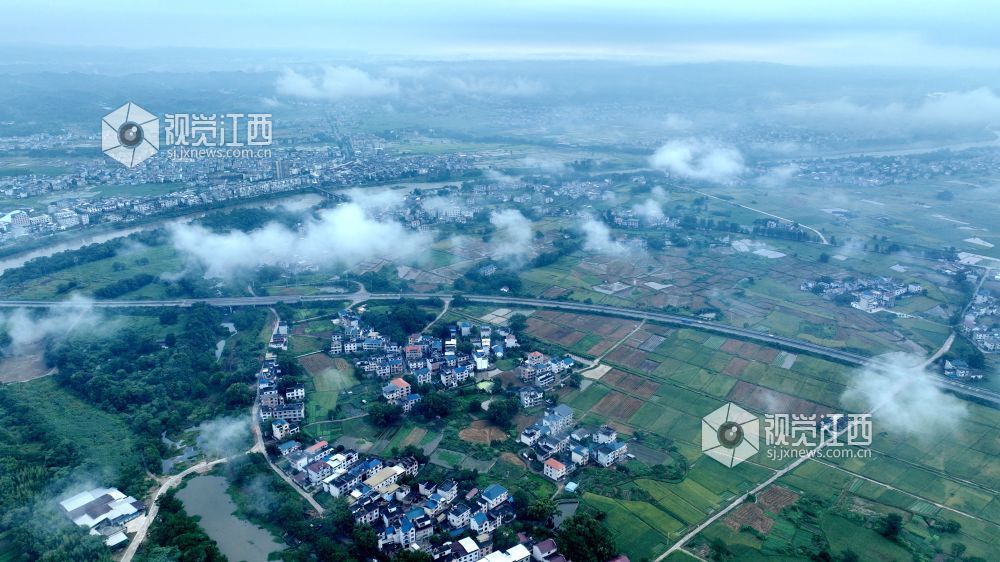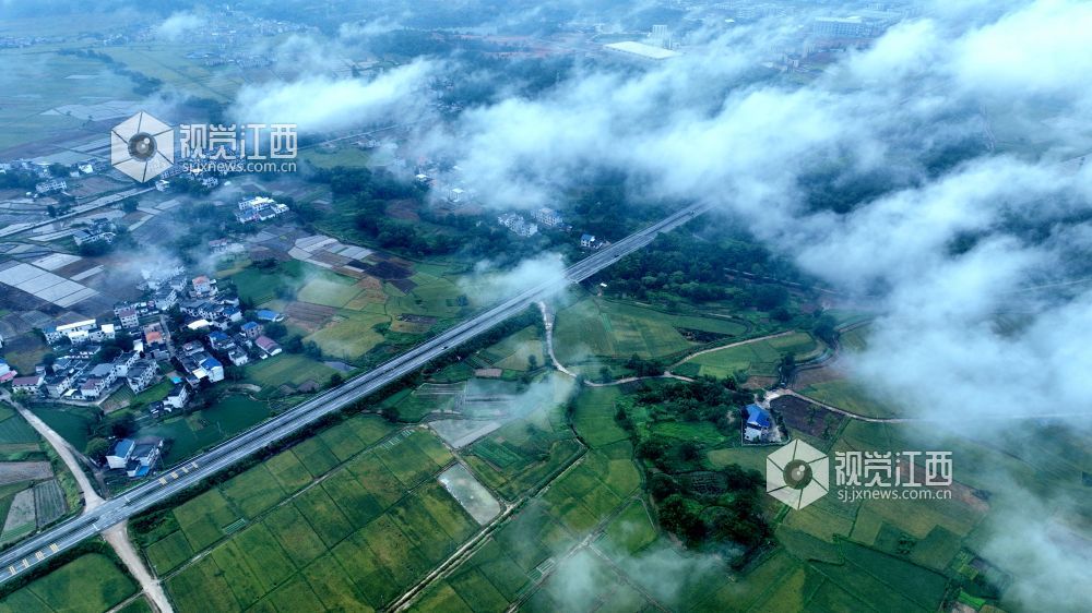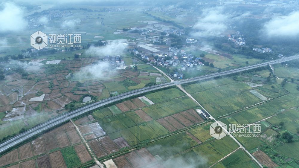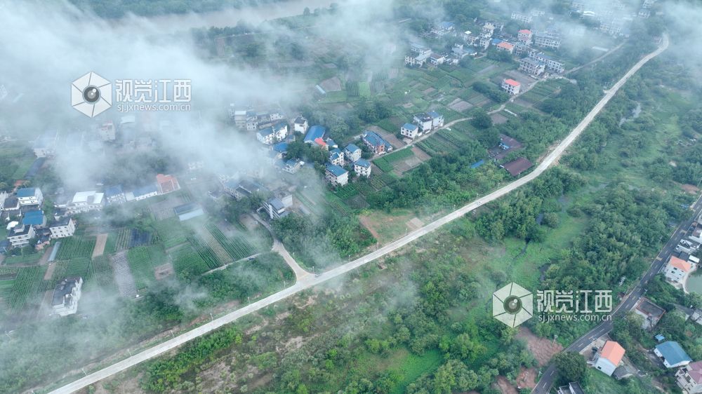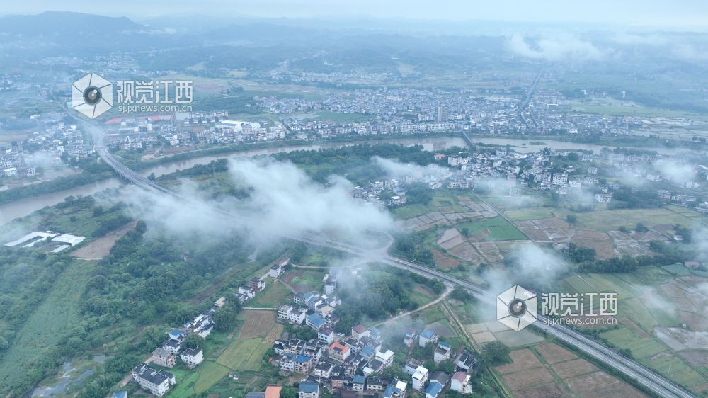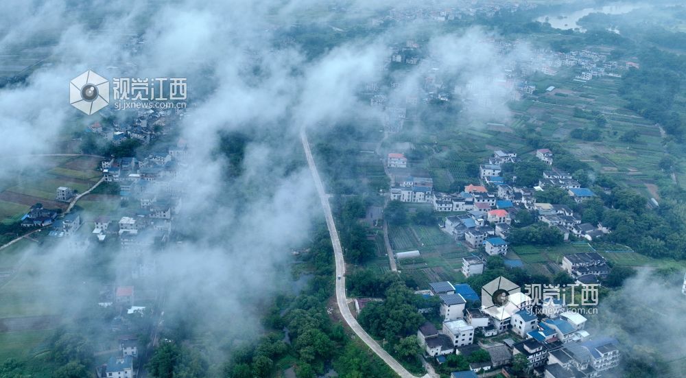 7月13日清晨,俯瞰江西吉安市遂川县雩云公路,它似灵动丝带蜿蜒穿梭于田园村落间,与缥缈云雾缠绵、和葱郁绿野相拥、同错落民居相融,一幅绝美的田园长卷在晨雾里缓缓铺展。