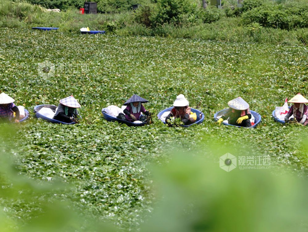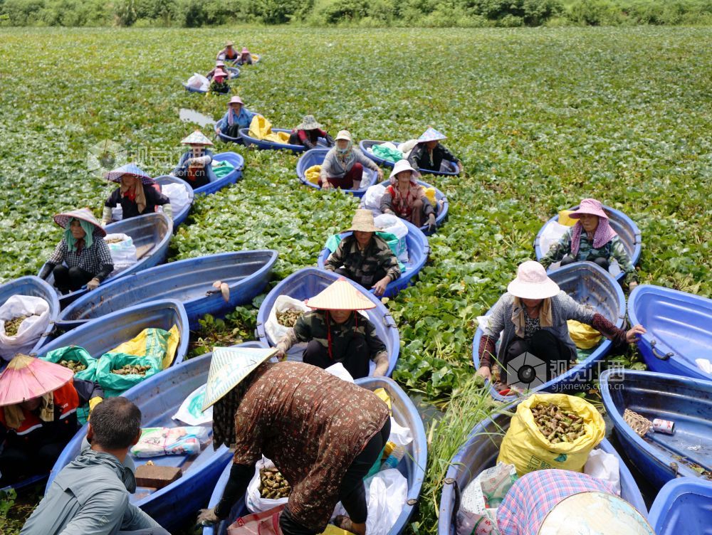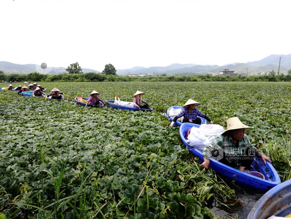 时下,菱角陆续成熟,菱角种植基地吸纳30余名村民每天采收菱角,一派丰收的忙碌景象。近年来,分宜县因地制宜发展菱角、莲藕等水上特色种植业,依托“水上经济”助力乡村振兴和农民增收。