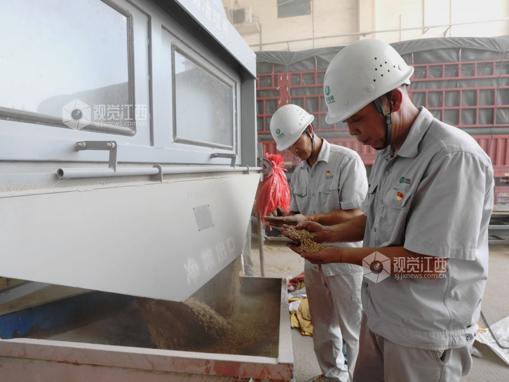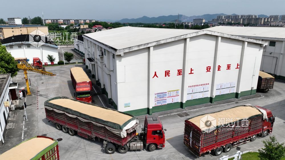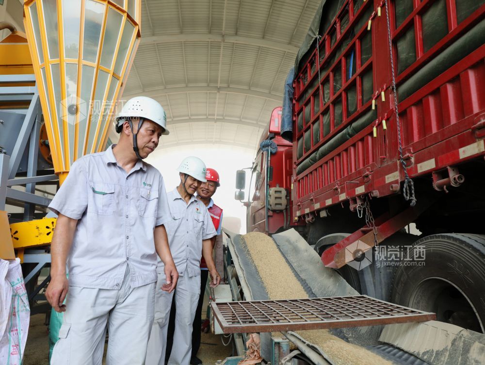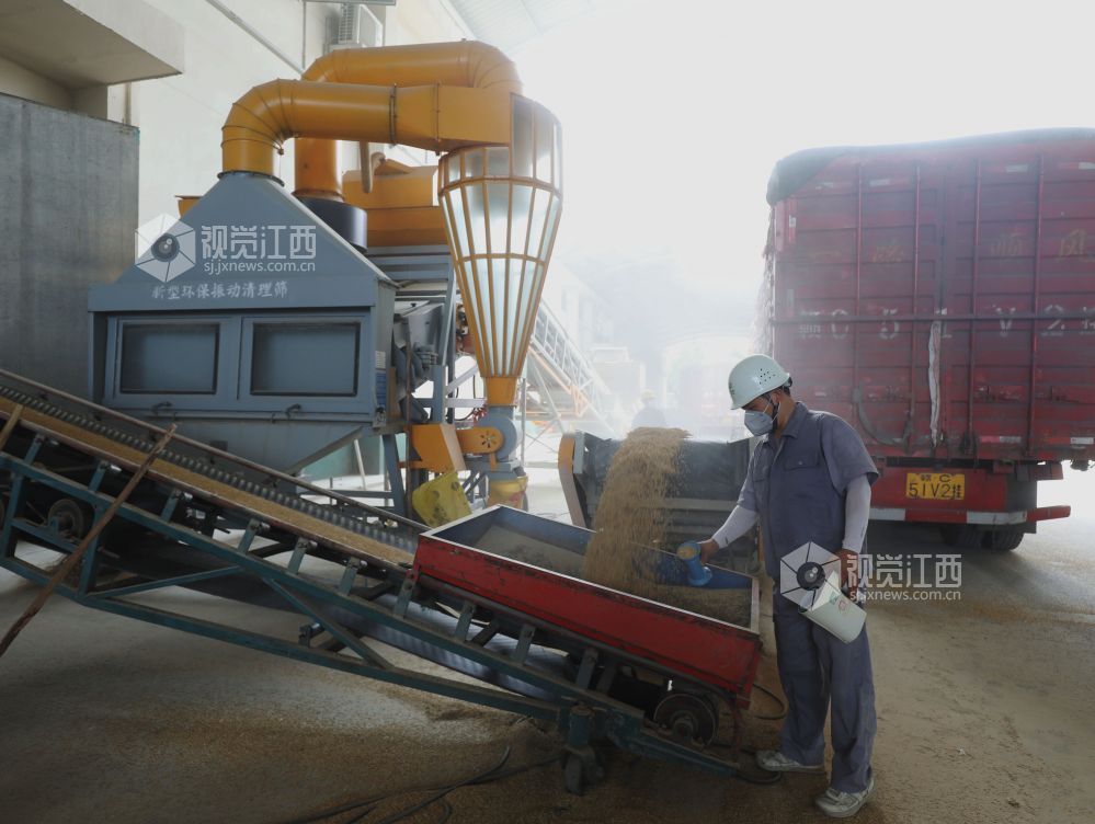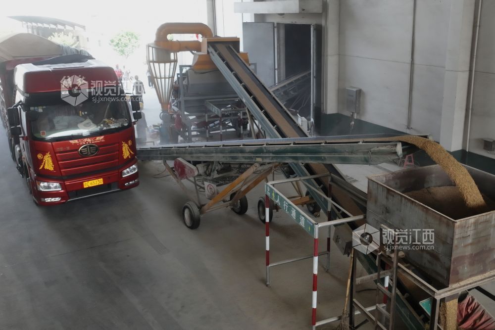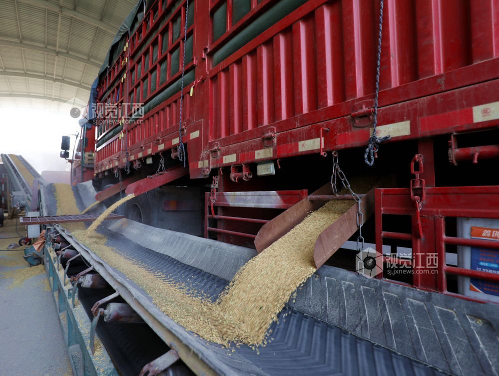 2025年7月17日,在江西省分宜县境内的中央储备粮新余直属库夏粮收购现场,自动机械传输带将运粮车上的稻谷源源不断送入粮仓。夏粮收购启动后,中储粮新余直属库做到早开门、晚收工,随到随收,日均收购量超1000吨;同时公开价格、把控质量,确保农户售粮无忧早稻颗粒归仓。