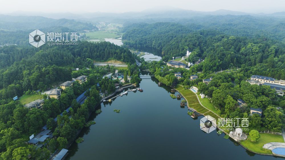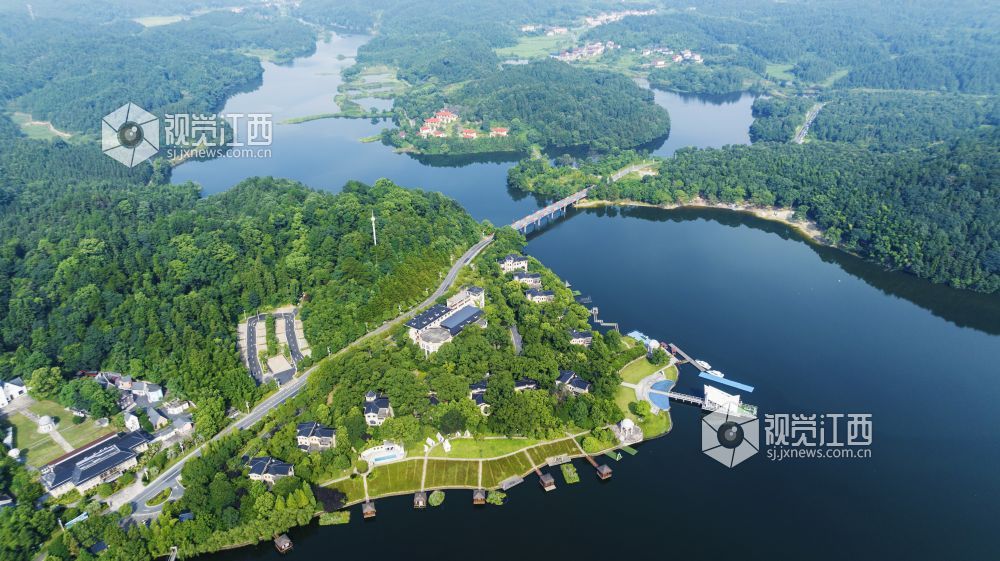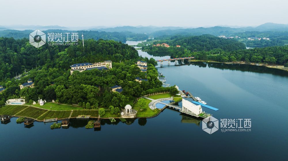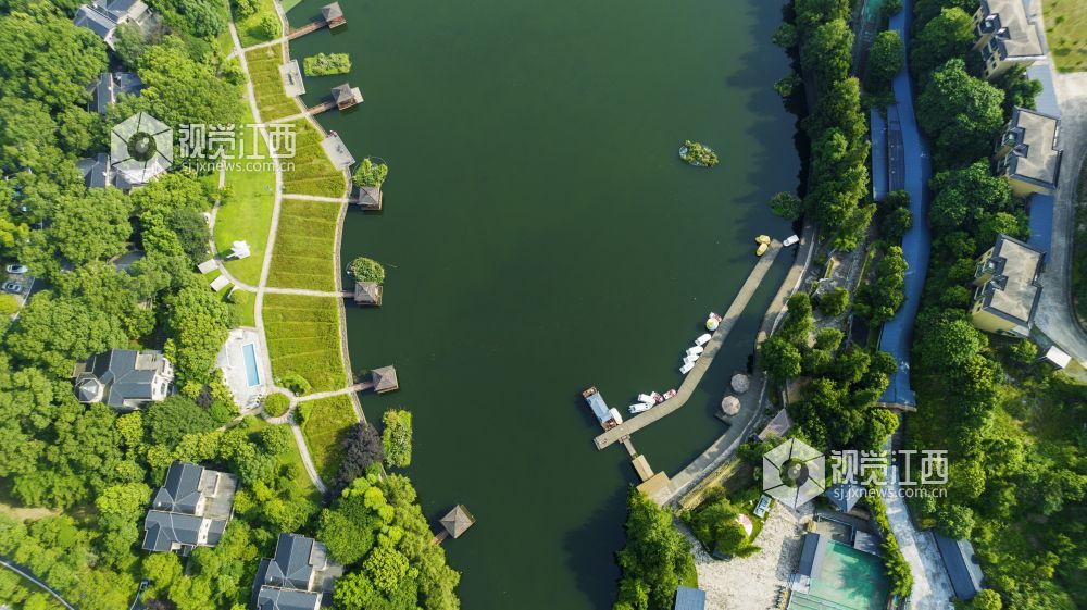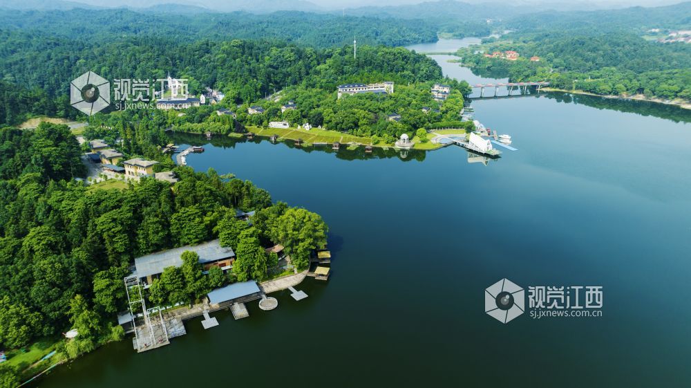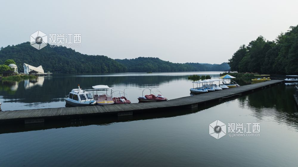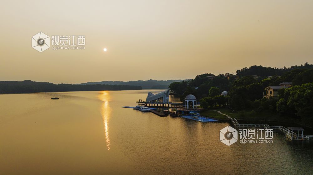7月18日,晨拍江西新余仙女湖区凤凰湾办事处舞龙湖,水清,岸绿,风景美如画,吸引了许多游客和市民前来休闲避暑。