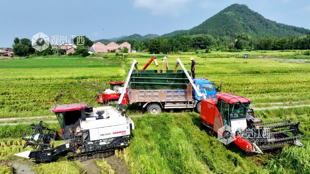 2025年7月18日,在江西省分宜县高岚乡下塘村,农机手驾驶收割机收割早稻。盛夏时节,当地种植的早稻陆续进入成熟期,种粮大户抢抓农时,组织农机开镰收割,田间地头呈现一派繁忙的丰收景象,确保粮食颗粒归仓。