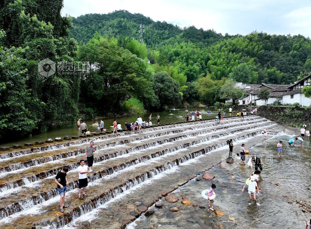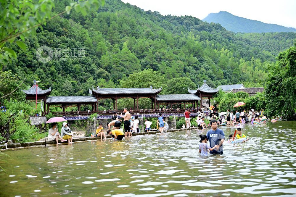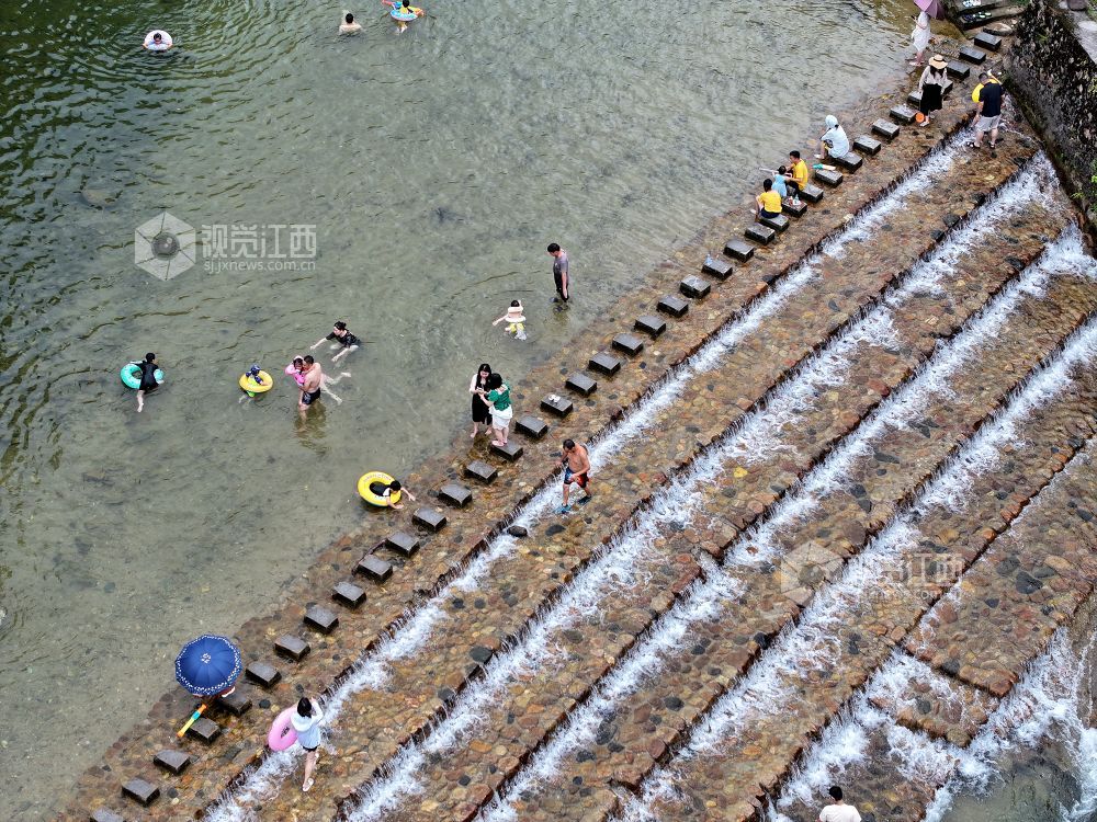 2025年7月19日,在江西省上饶市铅山县太源畲族乡水美村,游客正在玩水纳凉。近年来,铅山县紧紧围绕环武夷山国家公园(江西片区)发展带建设,进一步精心策划、精准施策,做好水文章,大力发展民宿,做优做美旅游产品,做实做细各项服务。