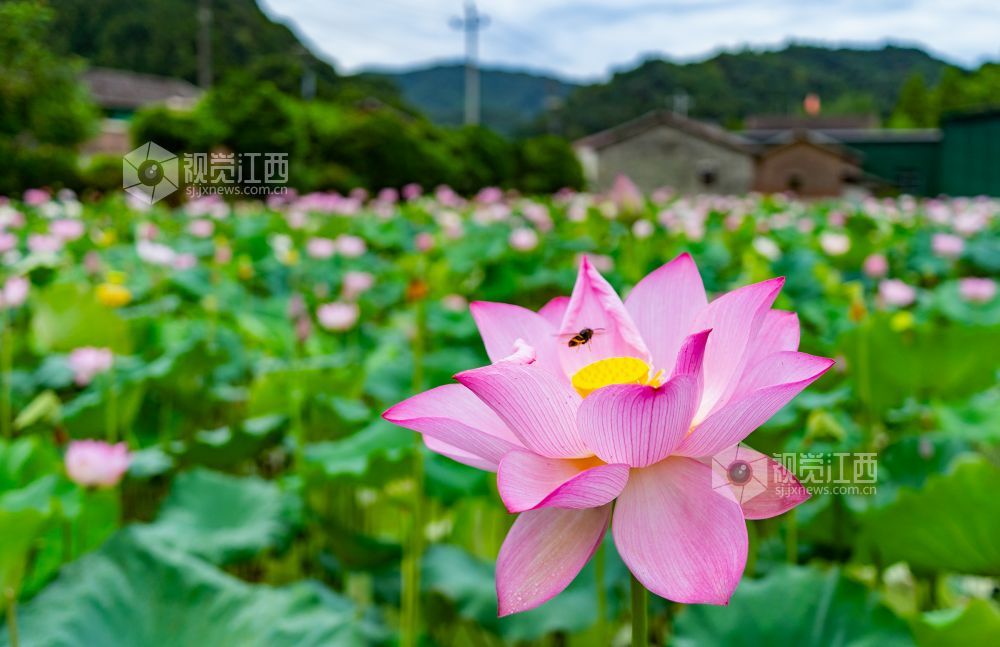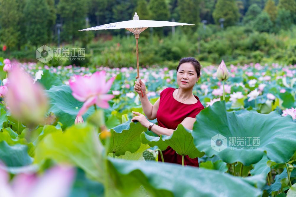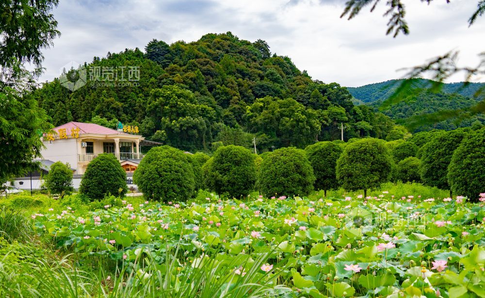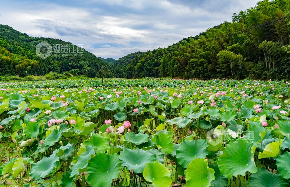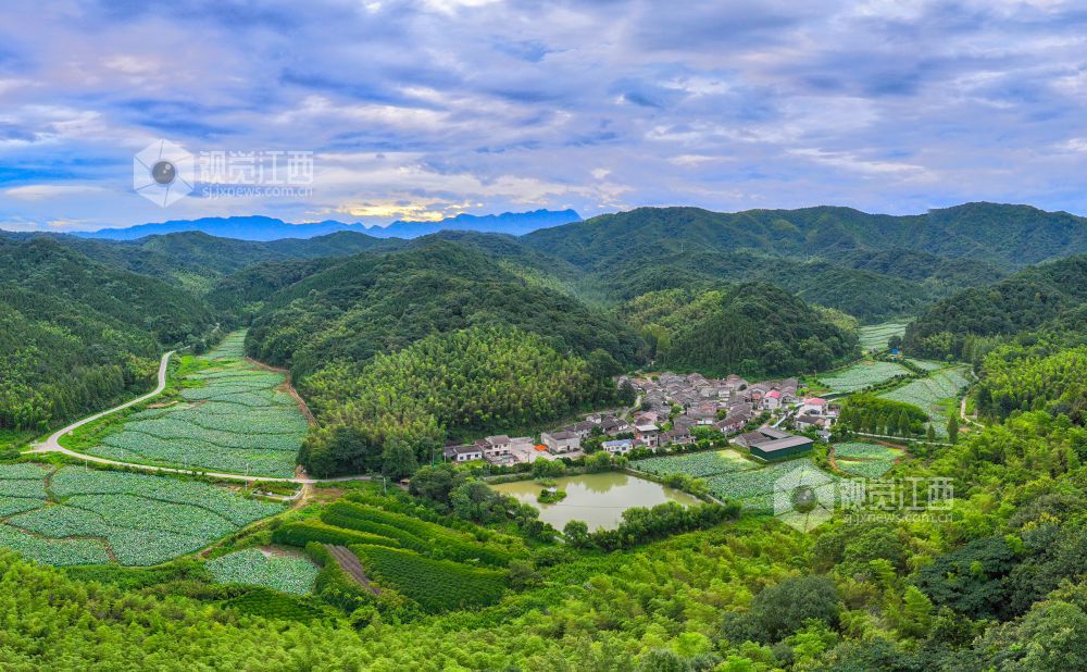 7月22日,航拍镜头下的江西省金溪县秀谷镇马街村委会符竹村,山林茂密,荷花绽放,整个村落掩映在一片绿色海洋之中。近年来,该县强化党建引领,不断加大生态文明建设力度,充分利用荒山荒坡,大力发展集体经济,带动村民增收致富,促进乡村振兴。