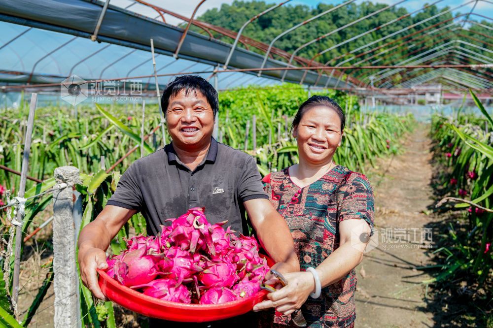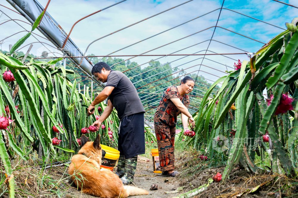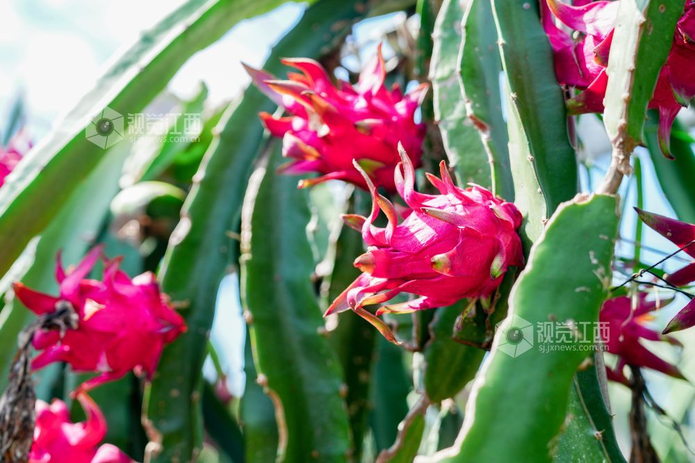 7月24日,江西万载县高城镇桥溪村的果园里硕果满枝,村内的火龙果基地与葡萄种植园迎来丰收季,田间地头处处洋溢着丰收的喜悦。