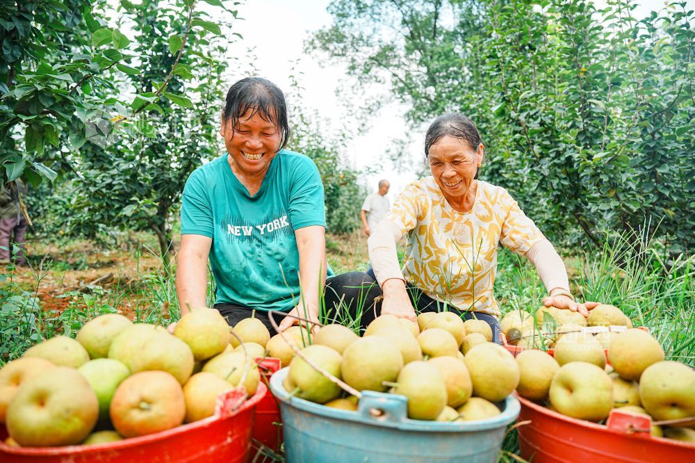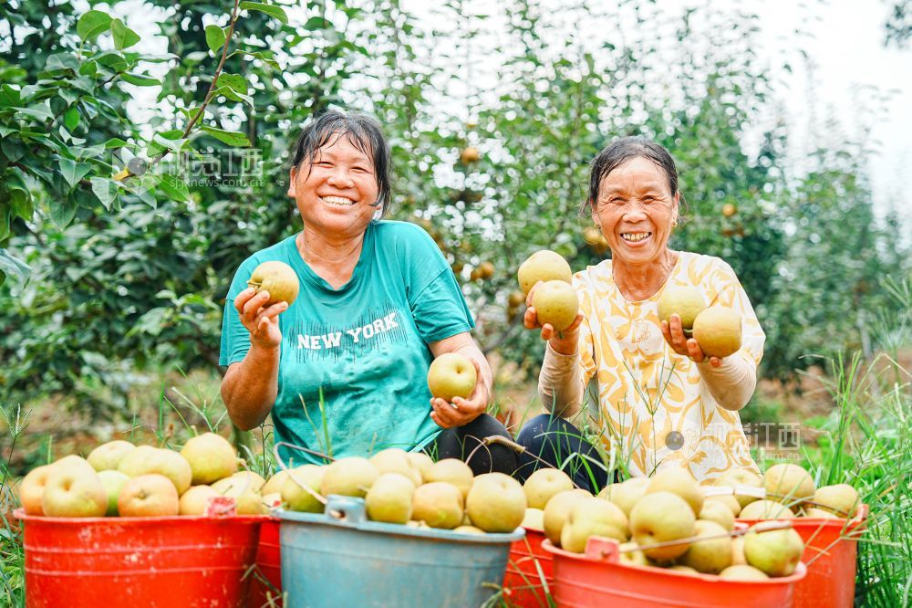 2025年7月23日,在江西省万载县三兴镇沙潭村一家梨园种植基地里,一颗颗饱满的翠冠梨挂满枝头,果农们穿梭在梨园深处,指尖轻捻、抬手采摘,动作娴熟,满是丰收的喜悦。