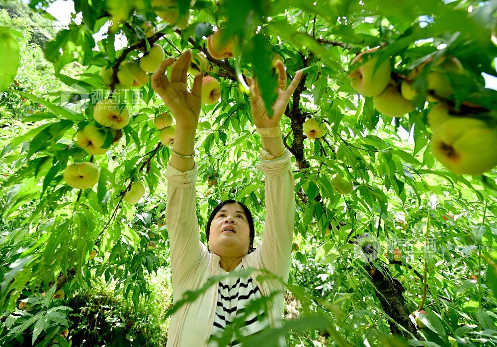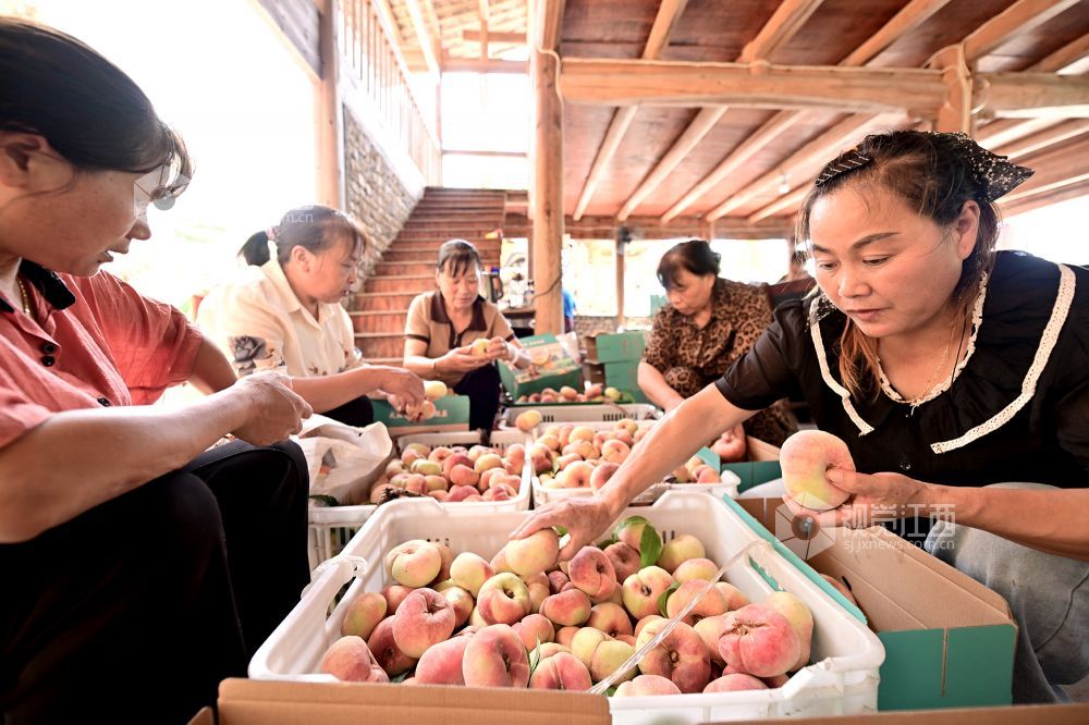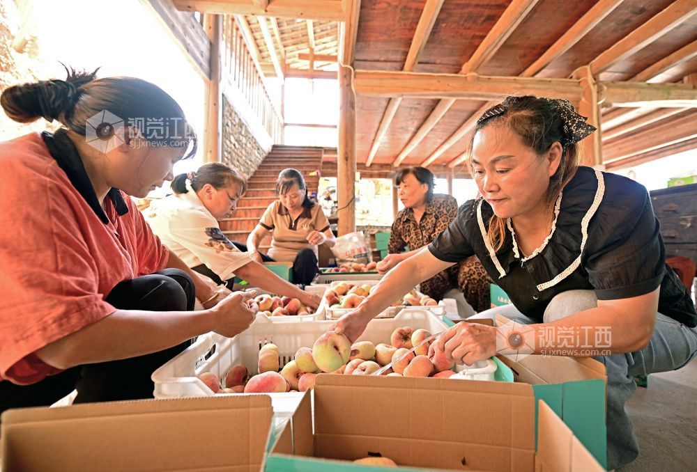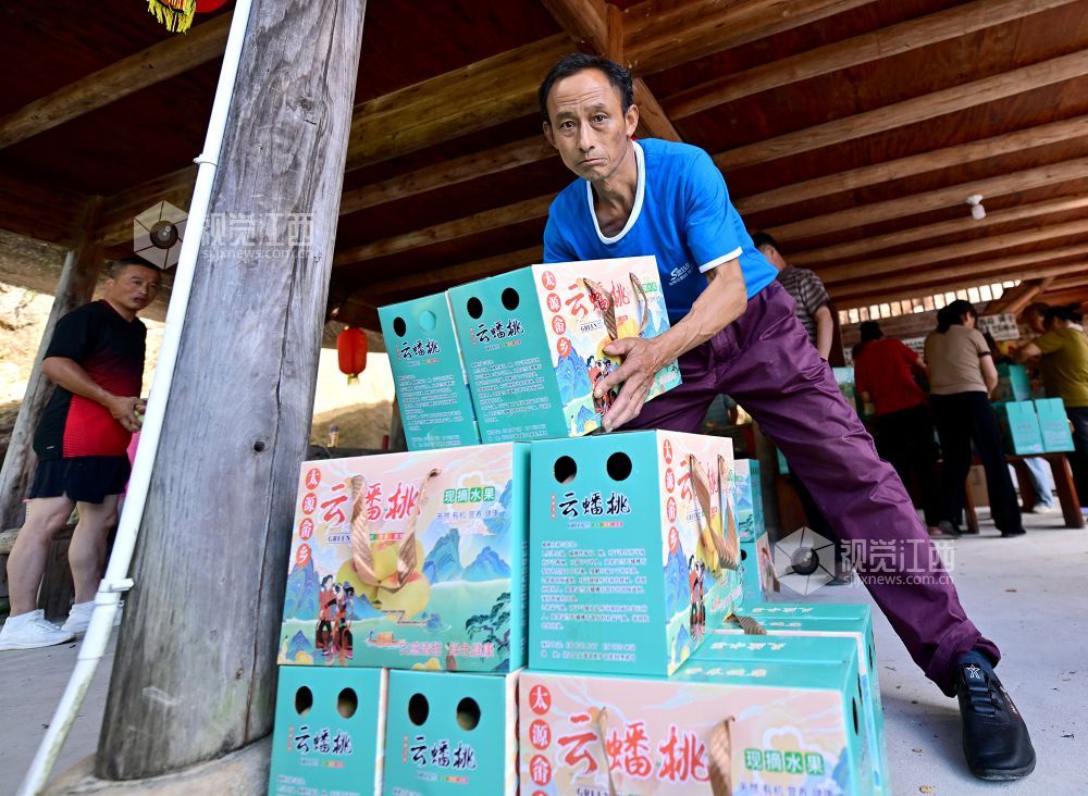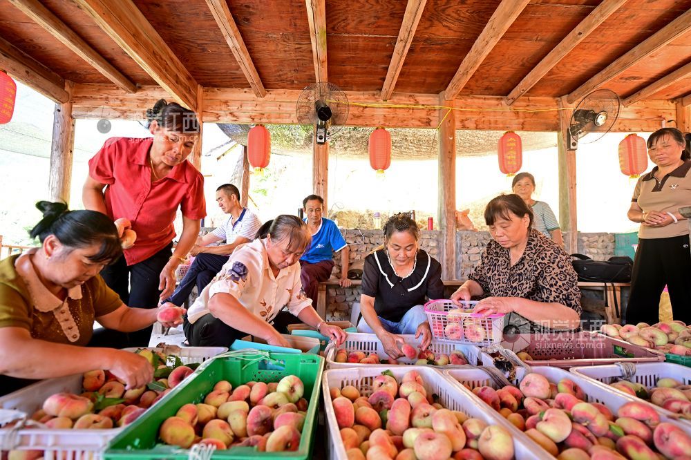 2025年7月24日,在江西省上饶市铅山县太源畲族乡畲族村蟠桃基地,蟠桃喜获丰收,一派繁忙景象。