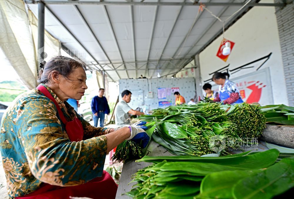 2025年7月24日,在江西省上饶市铅山县陈坊乡陈坊村,村民正在分拣粽叶。近年来,铅山县陈坊乡充分利用本地深山资源优势,按照“公司+合作社+农户”的发展模式,野生粽叶加工产业初具规模,带动周边近千村民就业,实现户均增收6000余元,力争闯出一条农民增收的特色乡村振兴之路。