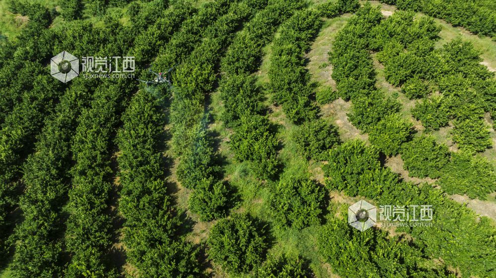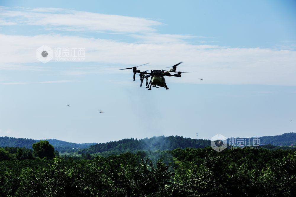 江西新余:“飞防”作业防治病虫害助力蜜桔健康发展