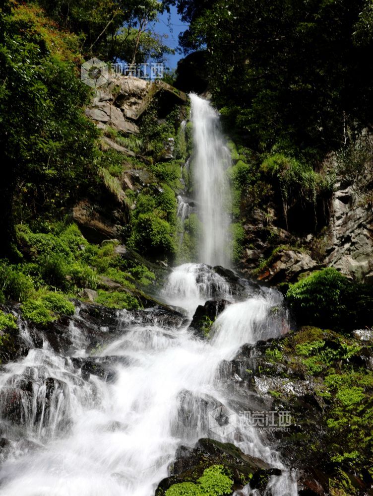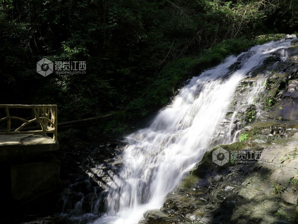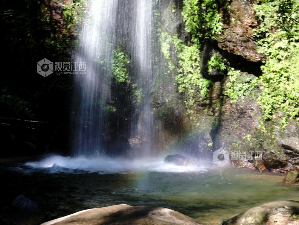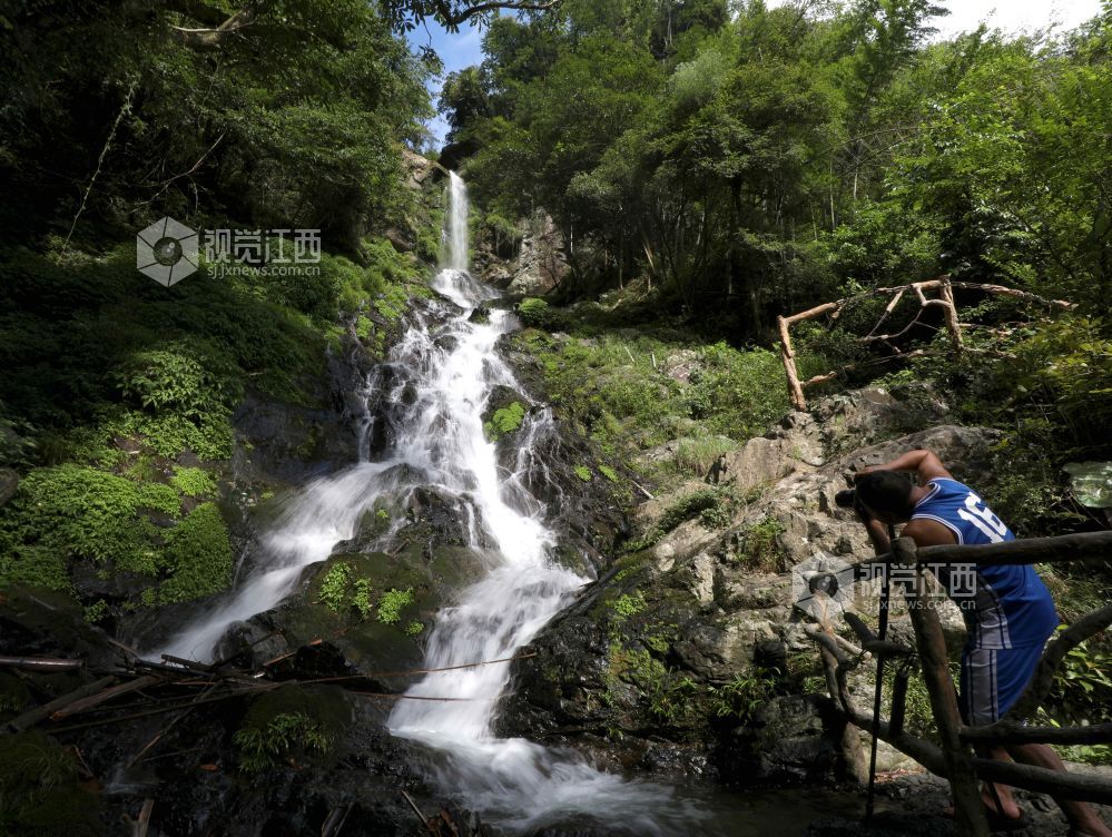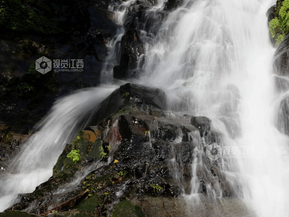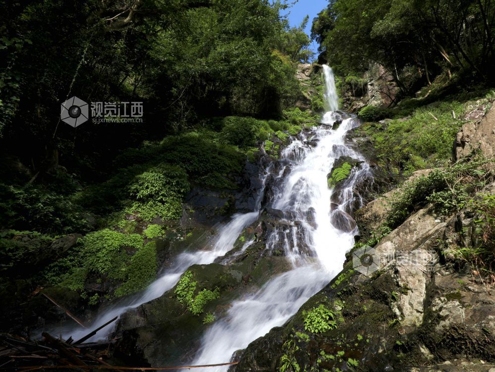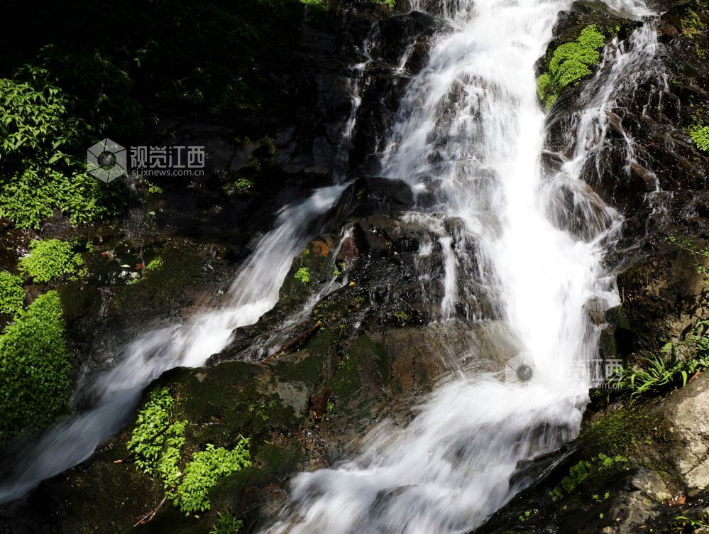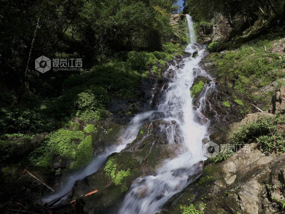 2025年7月26日,江西省分宜县大岗山黄毛洞瀑布,降雨过后,溪水沿着山势飞泻而下,溅起的水花在山间弥漫,与周边青翠的植被相映成趣,构成一幅生动的山水画,成为市民和游客休闲避暑、享受清凉的好去处。