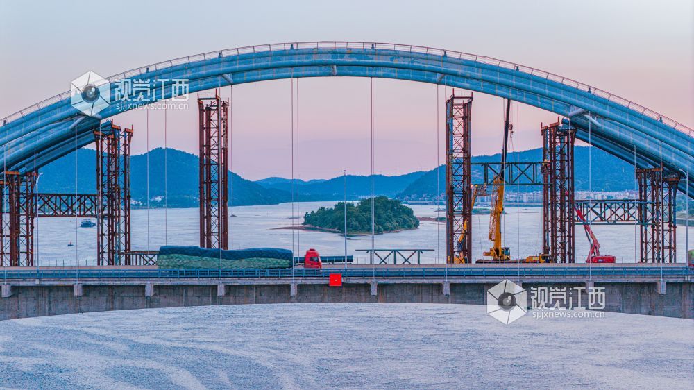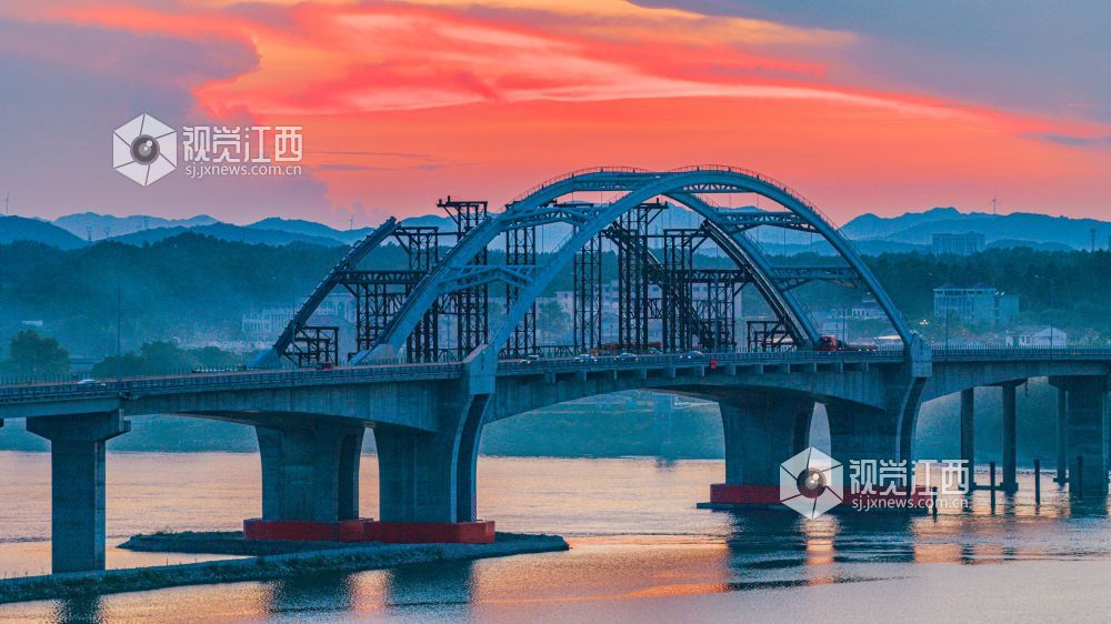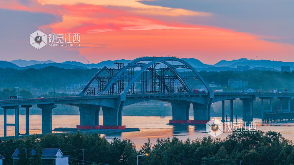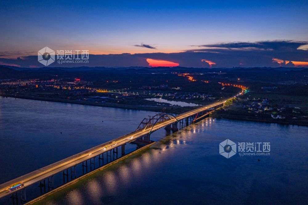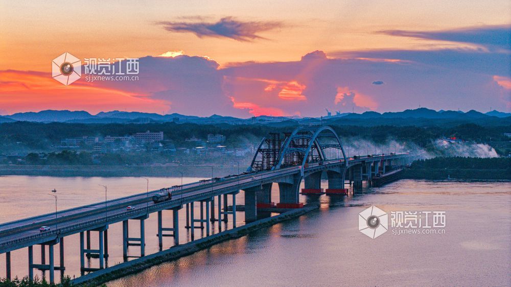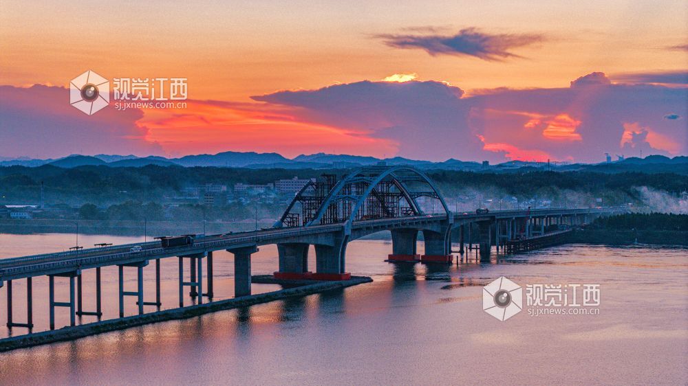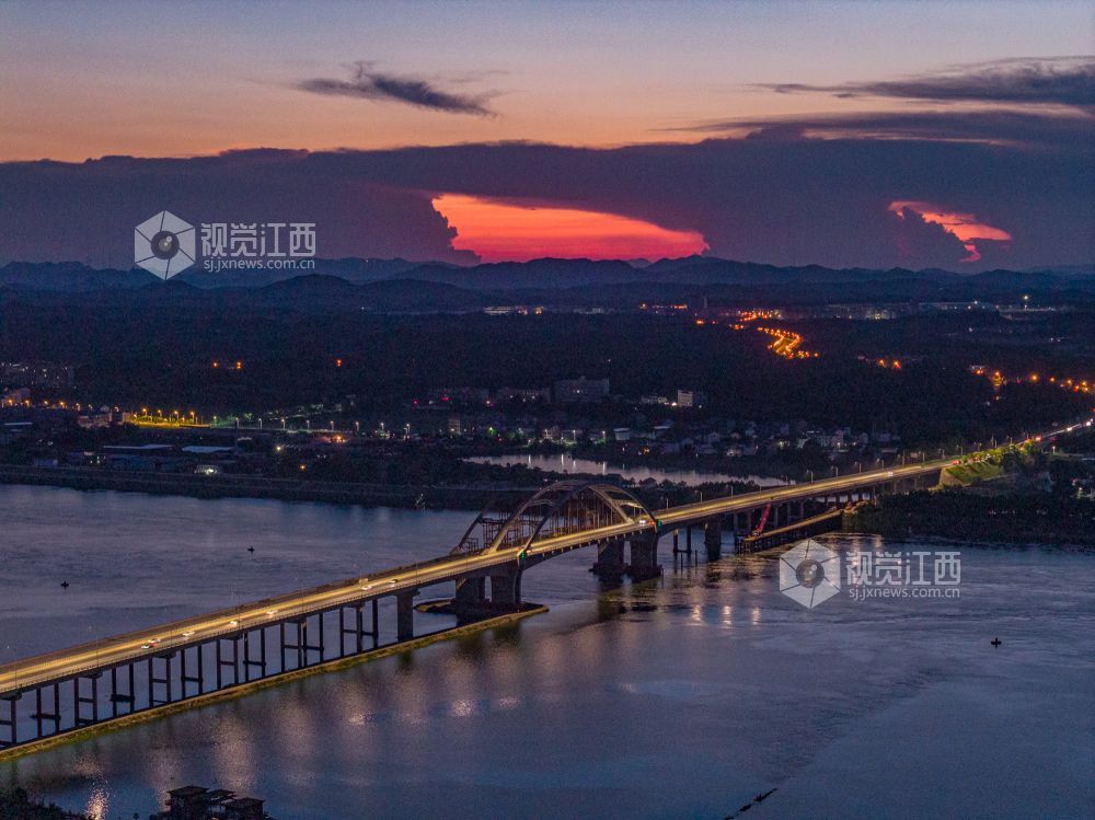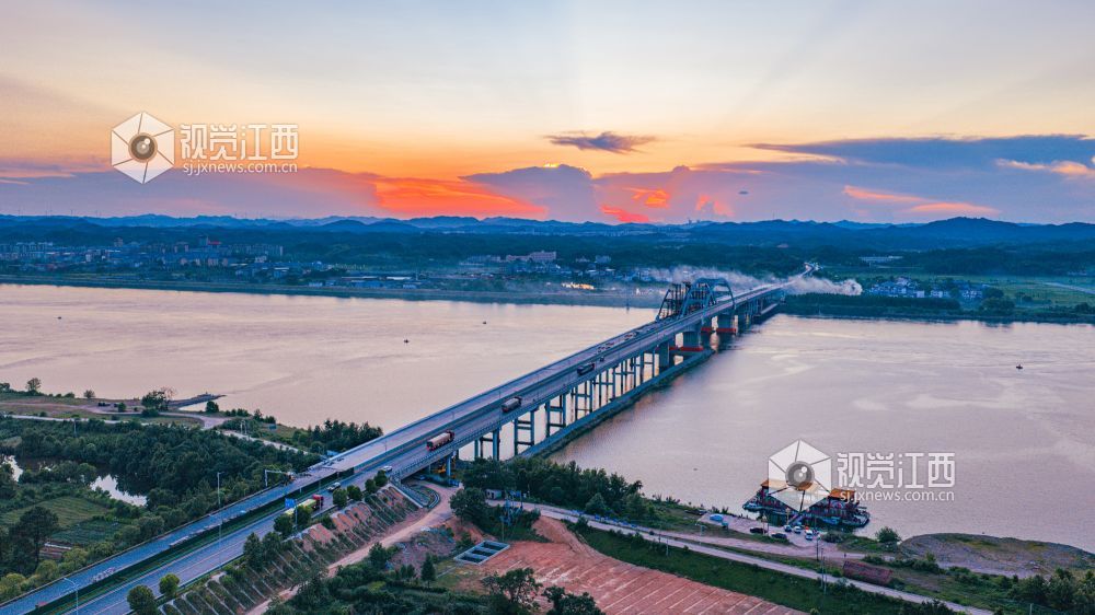 2025年7月24日在江西省吉安市峡江县赣江大桥拍摄的画面。