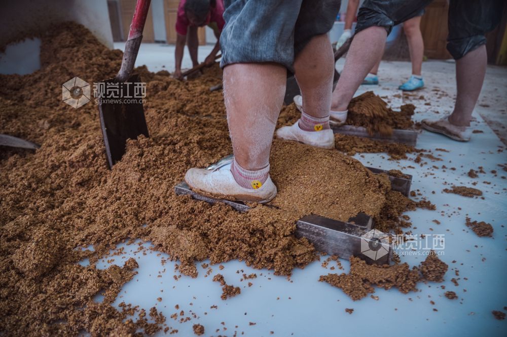 端午时节,制曲工作开启,女工们遵循传统,用灵巧双脚踩出一块块曲坯,在适宜温度湿度下,微生物在曲中生长繁殖,为后续发酵注入活力。重阳下沙,高粱经两次投料,开启九次蒸煮、八次发酵、七次取酒的漫长旅程。在紫红泥土为窖底的陈年老窖池中,丰富稳定的微生物群,助力粮食发酵生成更多香味物质。