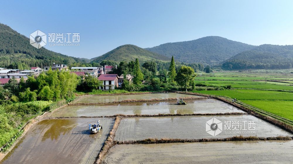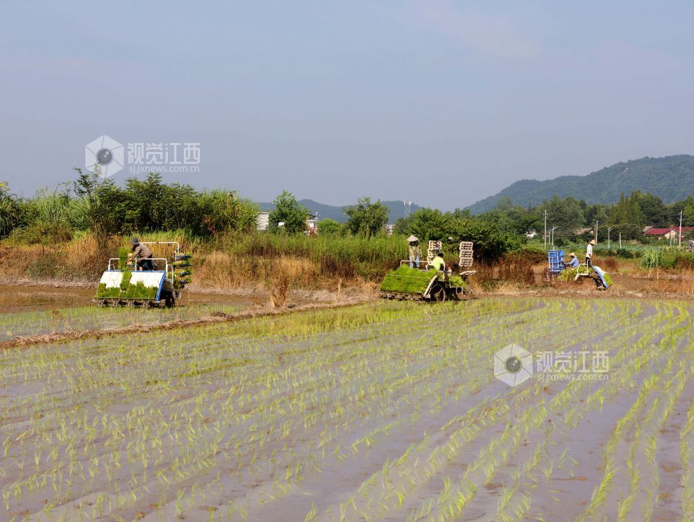 连日来,分宜县水稻种植户在抢收早稻之后,不误农时赶插晚稻秧苗,田间地头一派繁忙景象,广阔的稻田又陆续披上了“绿装”。