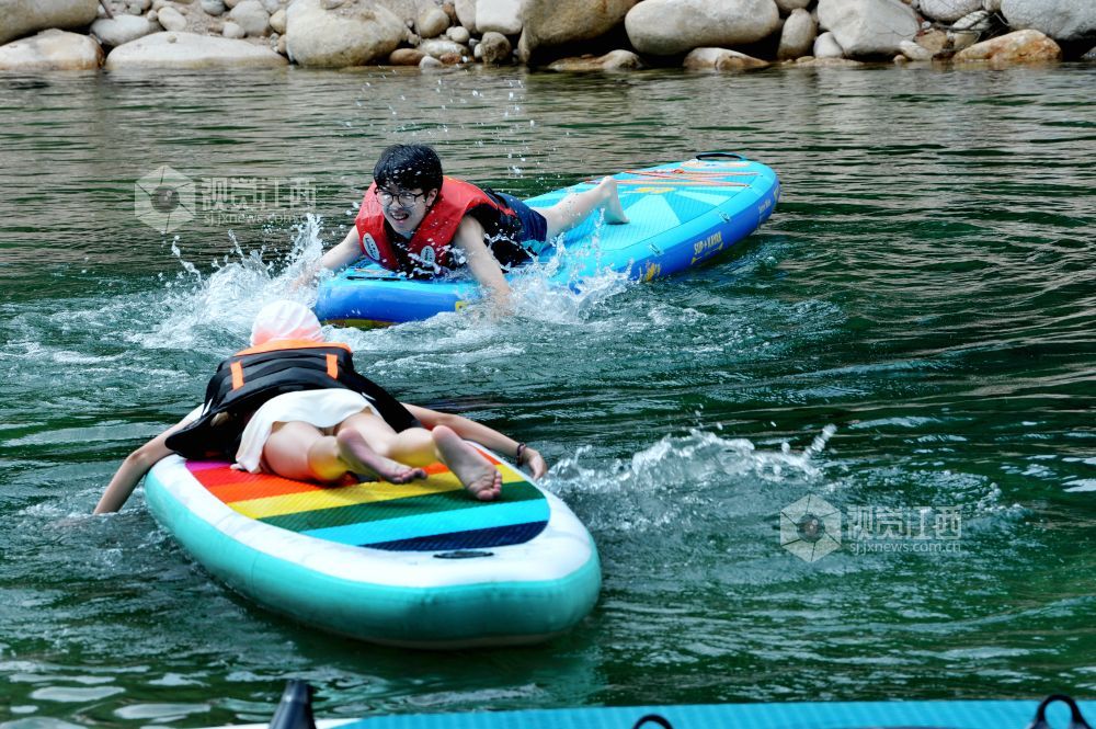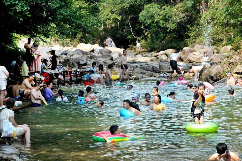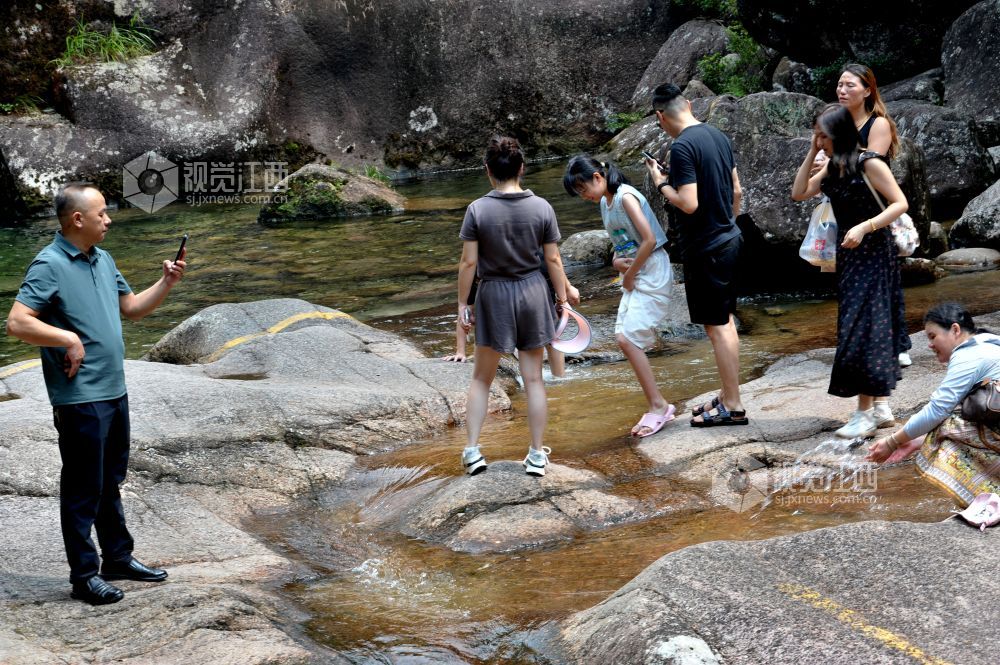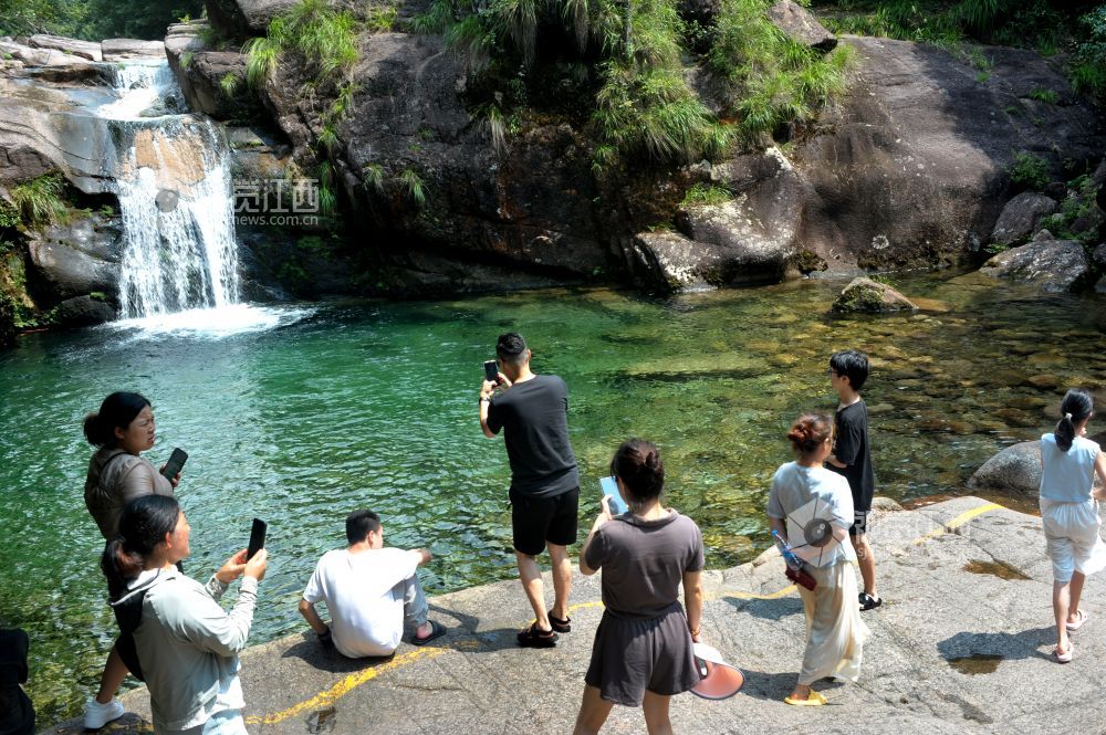 因近期的持续高温,慕名前来江西德兴大茅山梧风洞景区的游客明显增多。深山优越的气候、峡谷潺潺流水,让前来旅游观光、休闲避暑的游客一边享受到大山里空气中负氧离子带来的惬意同时,感受到潭瀑碧水中带来的清凉一“夏”,使人流连忘返。