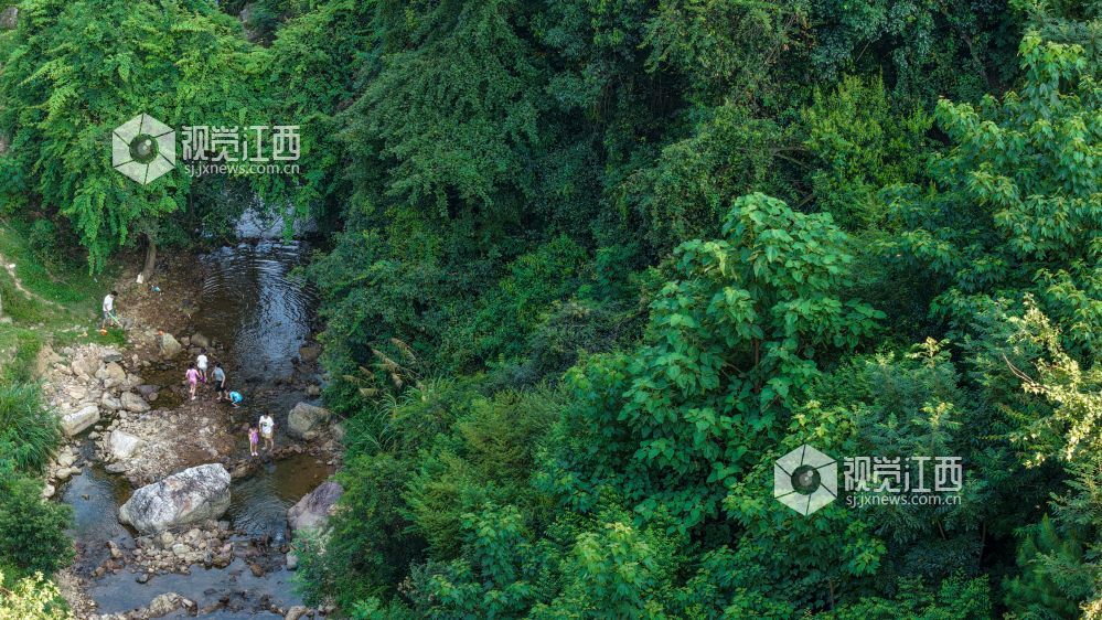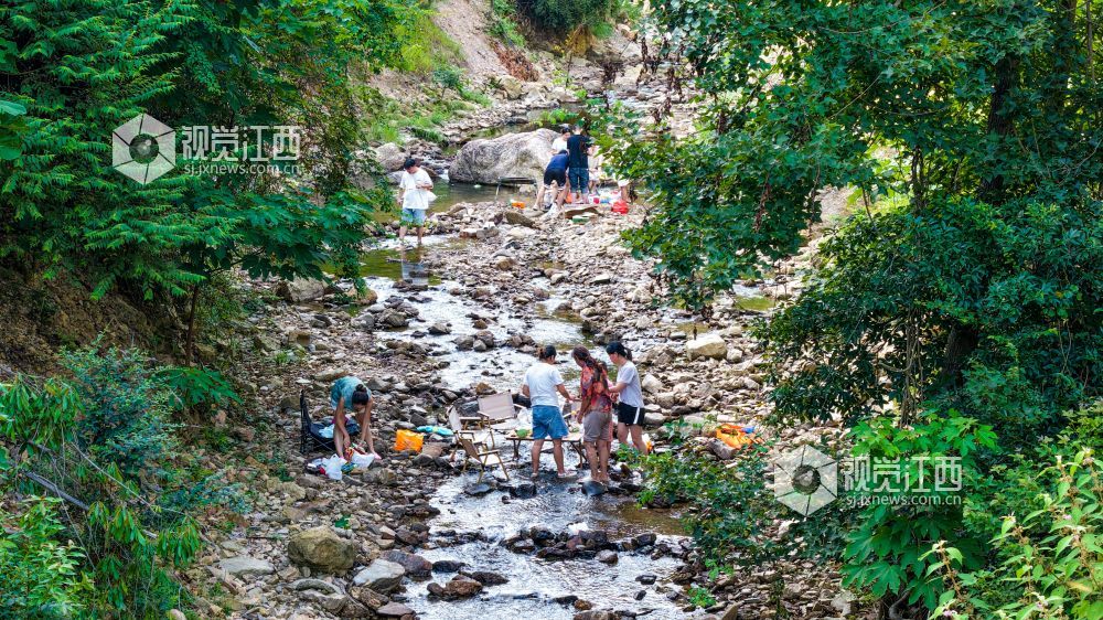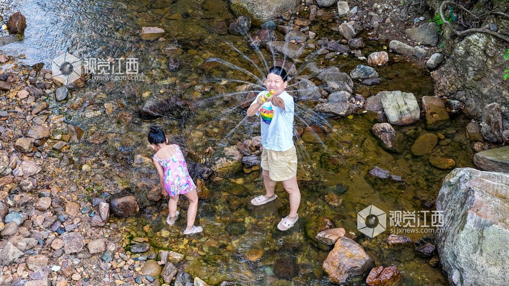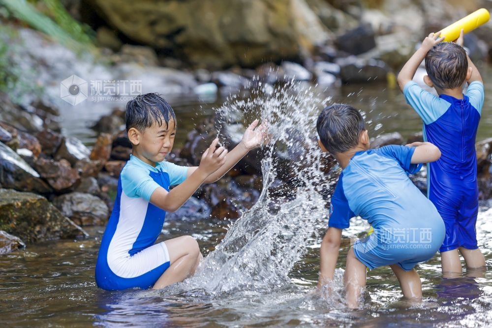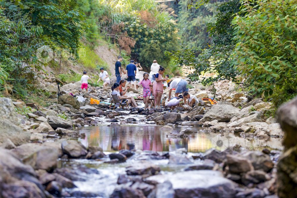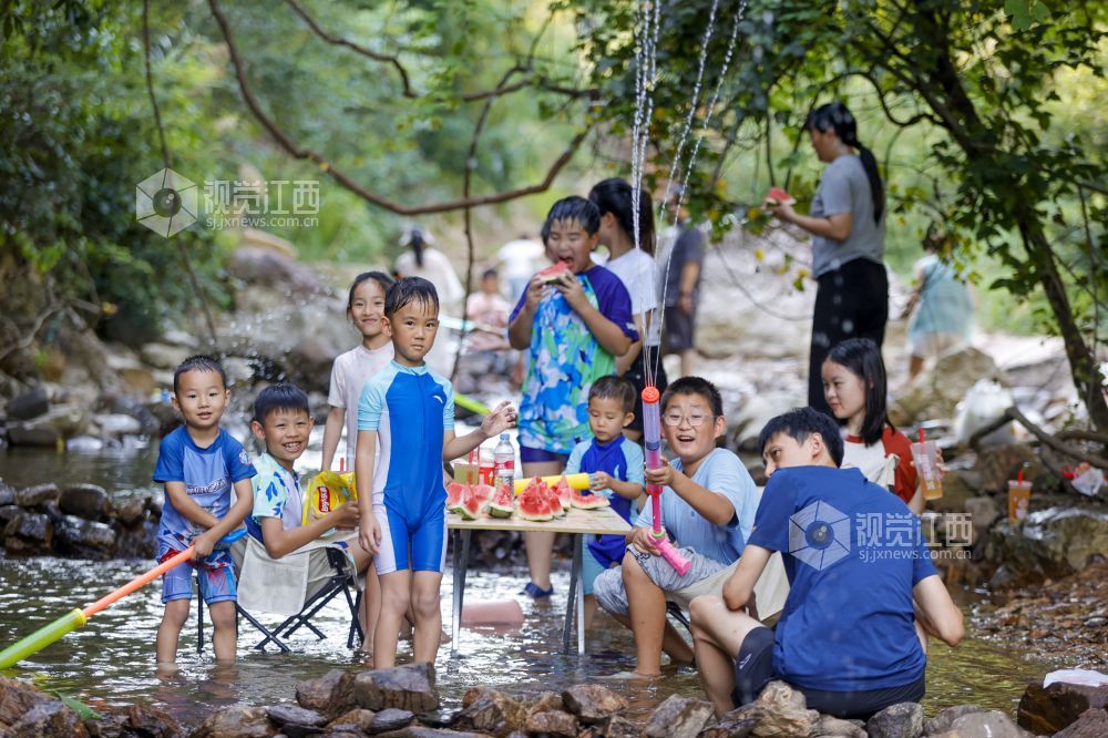 连日来高温不断,江西省吉安市峡江县的许多市民带着家人走近山溪亲水消暑,乐享大自然的清凉。