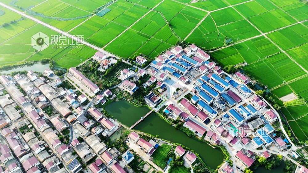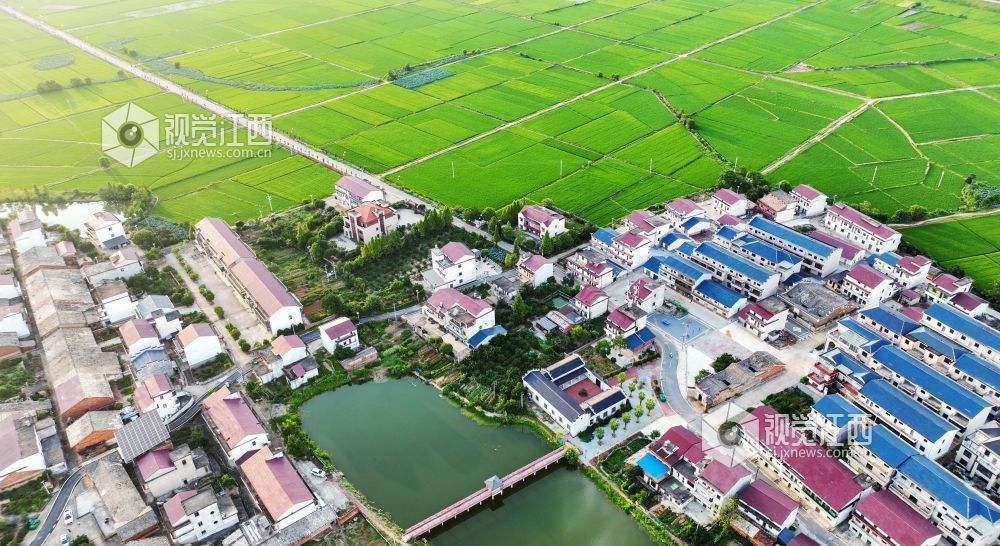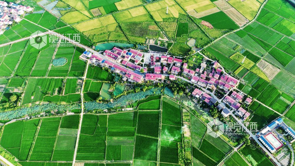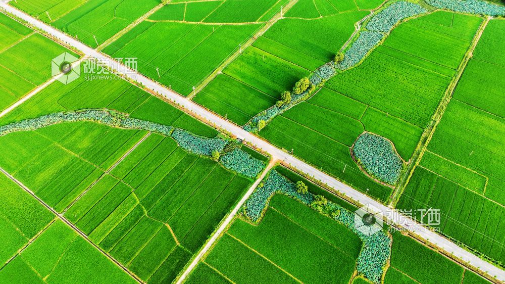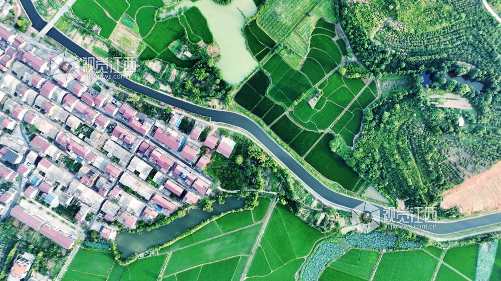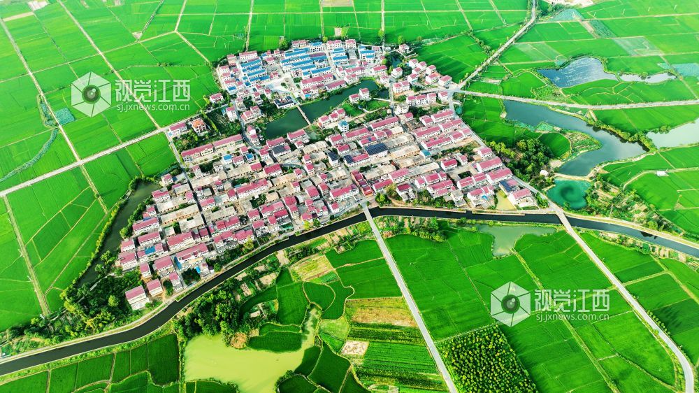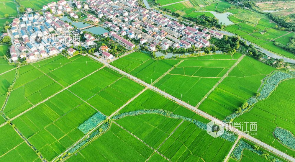 8月10日,江西省新余市渝水区罗坊镇咸宜村,袁惠渠灌区的潺潺流水滋养着两岸高标准基本农田的禾苗,一片青绿,与村庄、道路相映成趣,美如画卷。