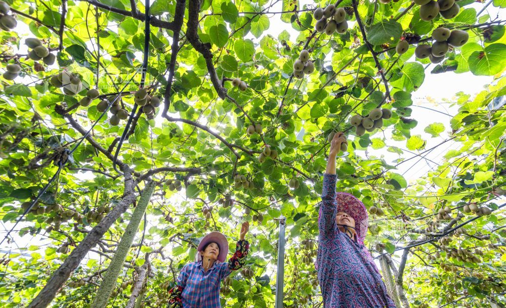 8月11日,江西省永新县象形乡的山间,连片的猕猴桃藤顺着支架攀爬延伸,浓密的绿叶在阳光下翻涌,如一片望不到边际的绿色海洋。藤蔓间,饱满的猕猴桃缀满枝头,青的翠、褐的润,沉甸甸地压弯了枝丫,预示着又一个丰收季的到来。视觉江西 陈靓珂 摄