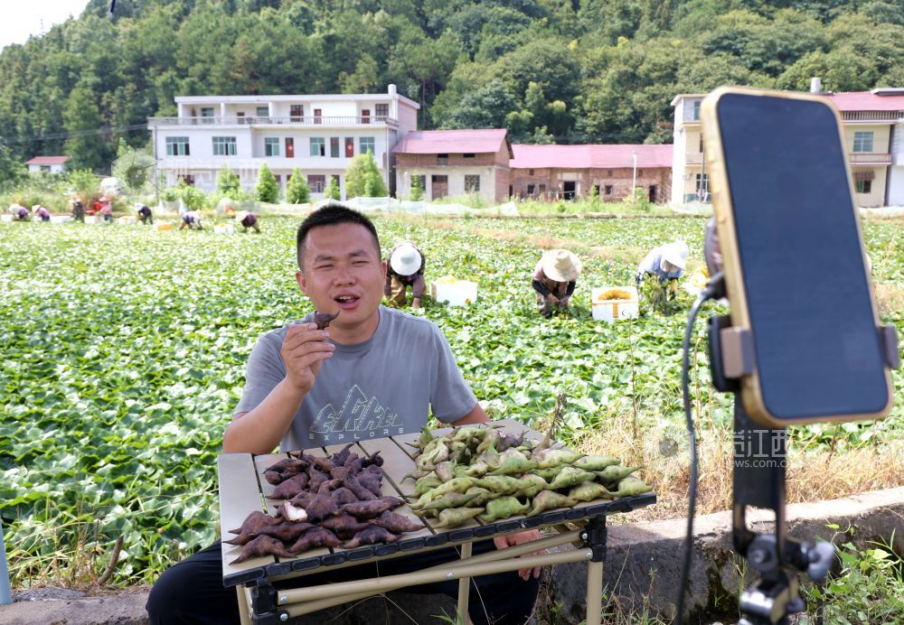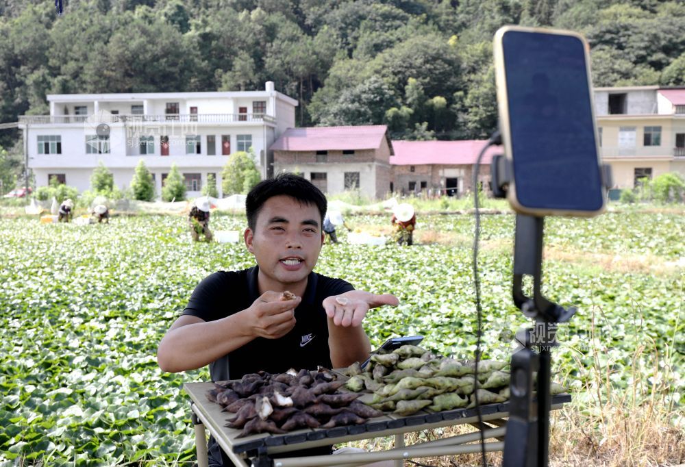连日来,分宜县千亩菱角迎来丰收季,当地邀请青年志愿者、“乡村主播”和网络主播等人群走进田间地头,以短视频传播、网络直播等形式带动销售,促进农民增收。